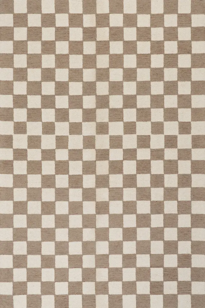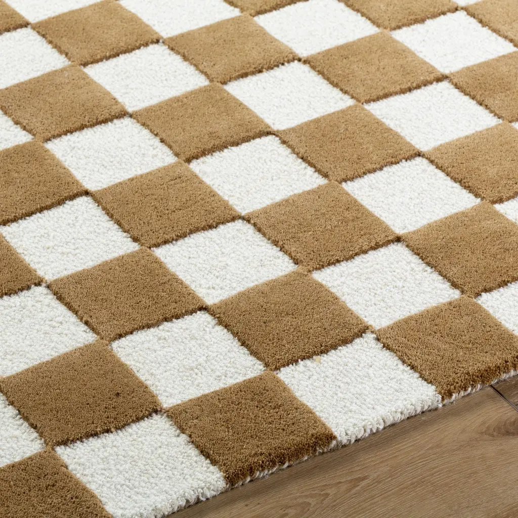 Geoffrey Transitional Checkered Wool Area Rug - 8' X 10' - Medium Brown/ White