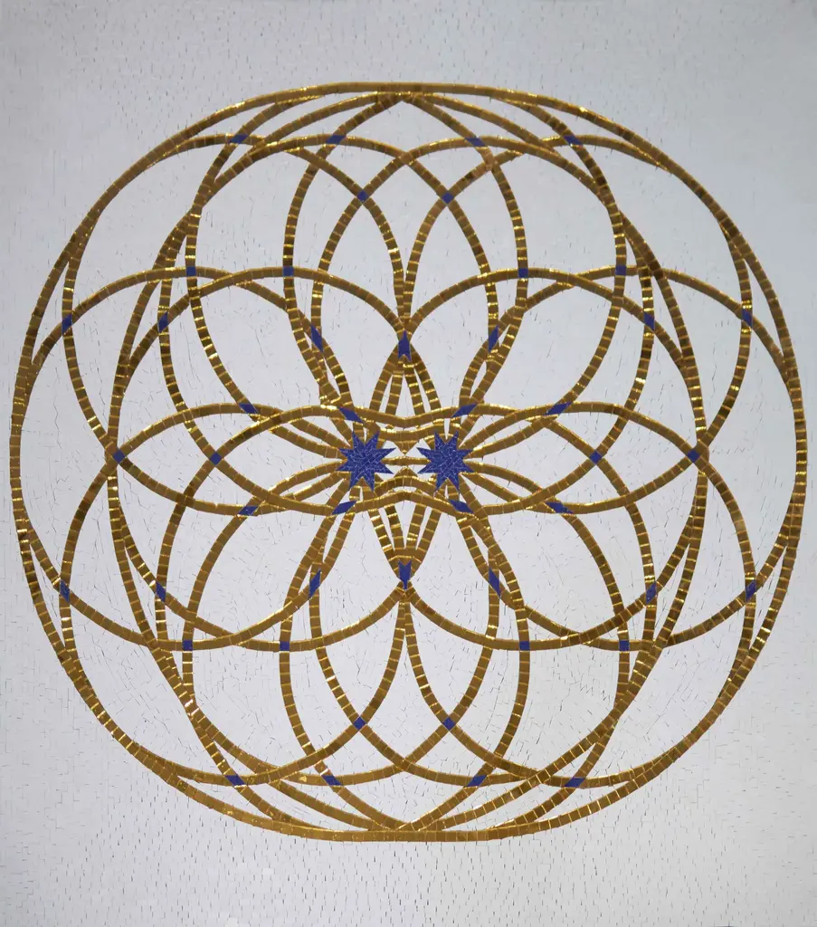 Elevate your space with the exquisite Geometric Arabesque WaterJet Inlay featuring a stunning real gold mosaic art tile insert. This breathtaking piece is more than just a decorative element; it’s a statement of artistry and craftsmanship. Handcrafted with meticulous attention to detail, this mosaic pattern combines luxurious golden tiles with pristine white tiles, creating a striking contrast that enhances the beauty of any interior.The design draws inspiration from the timeless Flower of Life pattern, characterized by a series of intricately overlapping circles that symbolize unity and harmony. This geometric motif not only captivates the eye but also adds a sense of depth and elegance to your floors, making it an ideal centerpiece for both contemporary and classic decor styles.Every tile is expertly crafted and arranged by skilled artisans, ensuring that each piece is unique and of the highest quality. The handmade nature of the mosaic reflects a commitment to traditional craftsmanship, bringing a personal touch to your home. Whether used as a tile rug in the living area, an accent in a hallway, or a striking focal point in an entryway, this mosaic rug is designed to transform any space into a work of art.The luxury of real gold in the design adds a touch of opulence, making it perfect for those who appreciate the finer things in life. Not only does this mosaic tile enhance your decor, it also invites admiration and conversation, as guests are drawn to its beauty and intricate detail.Bring your floors to life with this living, handmade mosaic tile rug. Easily integrate this stunning geometric pattern into your home’s aesthetic to create an inviting atmosphere that feels both modern and timeless. Choose the Geometric Arabesque WaterJet Inlay with Real Gold Mosaic Art Tile Insert for a touch of elegance and sophistication that will elevate any room.