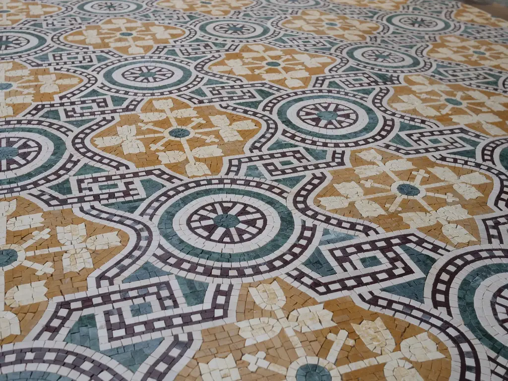 Elevate your home decor with the exquisite Geometric Botanical Mosaic Rug - Tullia, a stunning piece that seamlessly combines artistry and function. This large area rug is designed to transform any space, making it an ideal addition to living rooms, dining areas, or even spacious hallways. Its breathtaking interlocking pattern showcases a harmonious blend of geometric and botanical motifs, intricately crafted in a vibrant palette of purple, blue, green, white, and ivory. This handmade masterpiece not only enhances the aesthetic appeal of your flooring but also adds a touch of sophistication.Crafted with meticulous attention to detail, the Tullia rug offers both durability and beauty. Its captivating design is sure to catch the eye of guests, providing a stylish foundation for your furniture arrangements. Whether placed on elegant wood floors or luxurious marble, this mosaic rug serves as a striking centerpiece that complements various interior design styles, from contemporary to eclectic.But the versatility of the Geometric Botanical Mosaic Rug - Tullia doesn't stop at being an area rug. You have the option to select your desired size, allowing you to creatively use it as a mosaic wall feature or even as a unique pool mosaic, bringing a touch of the extraordinary to your outdoor oasis. Indulge in a piece that speaks to your personal style while providing comfort underfoot. The Tullia rug is not just an accessory; it’s a statement piece that redefines your living space. Experience the blend of nature and geometry with this stunning rug and let it inspire the ambiance of your home. Make the Geometric Botanical Mosaic Rug - Tullia a focal point in your decor and enjoy the beauty it brings to your surroundings.