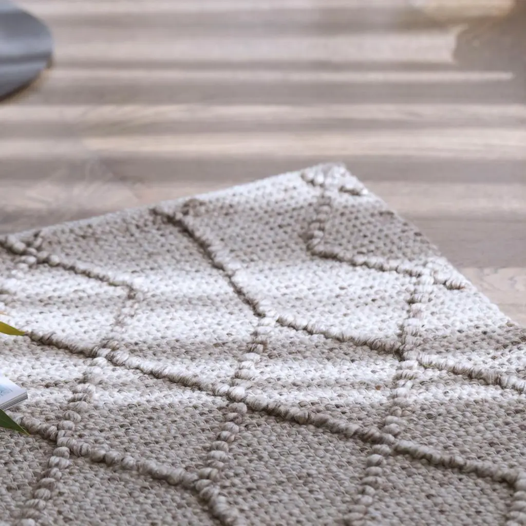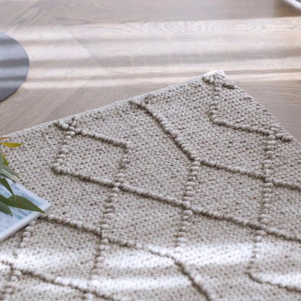 The conversation weave is a geometric design in an honest tonal palette that will blend well with any color scheme. This relaxed and durable style is created from a robust wool and cotton mix. This weave masterfully balances simplicity with ease, for any relaxing space.All ground control rugs are hand loomed to order, please allow 6-8 weeks for delivery.We are able to approve a 50% deposit to make your rug, with balance prior to delivery.Composition: Wool 75%, cotton 25%.