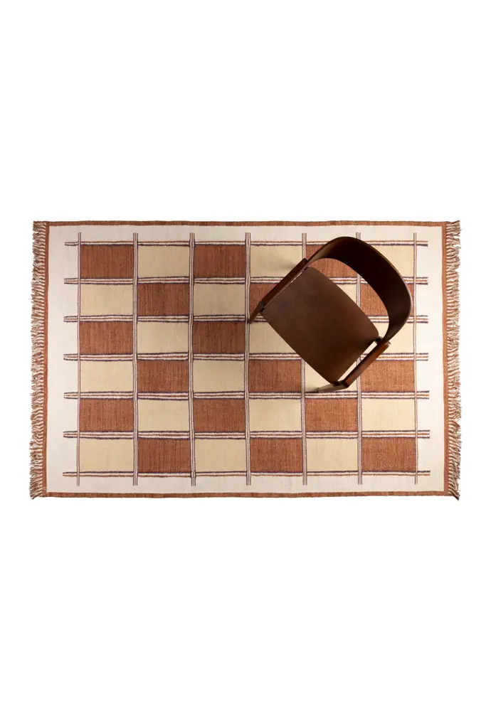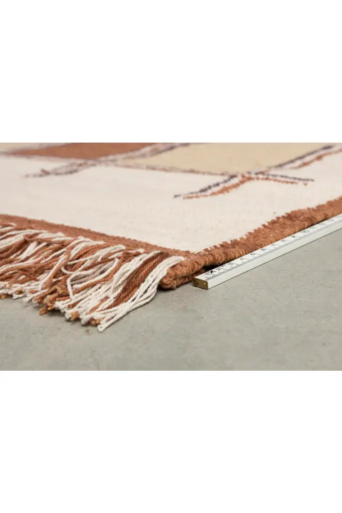Infuse your home with warmth with the Carpet Gambit by Dutchbone. Crafted from soft cotton, this rug showcases captivating rectangular patterns in alternating brown and beige hues, creating a cozy blend of texture that envelops your living space. With its charming fringes, the Gambit carpet adds character to any interior, anchoring the design with its timeless style.