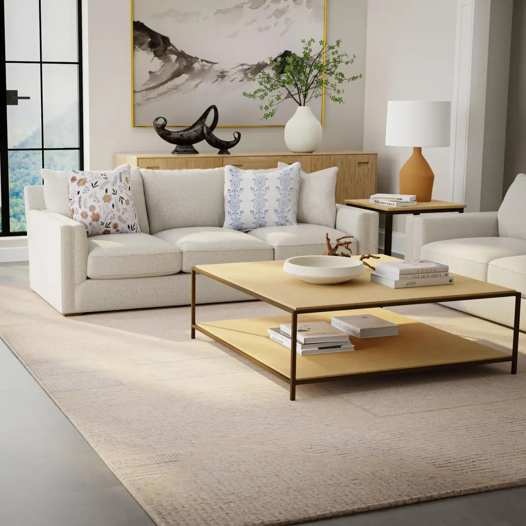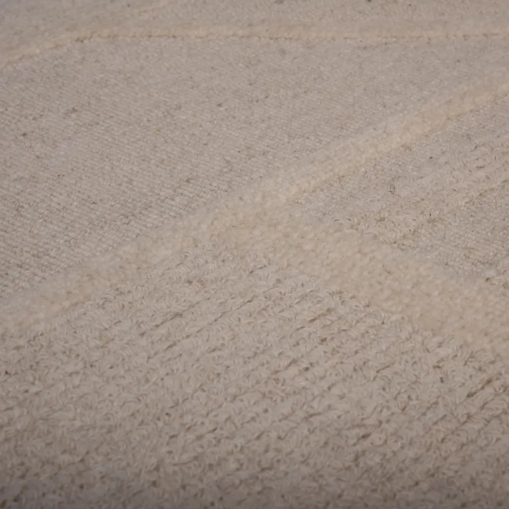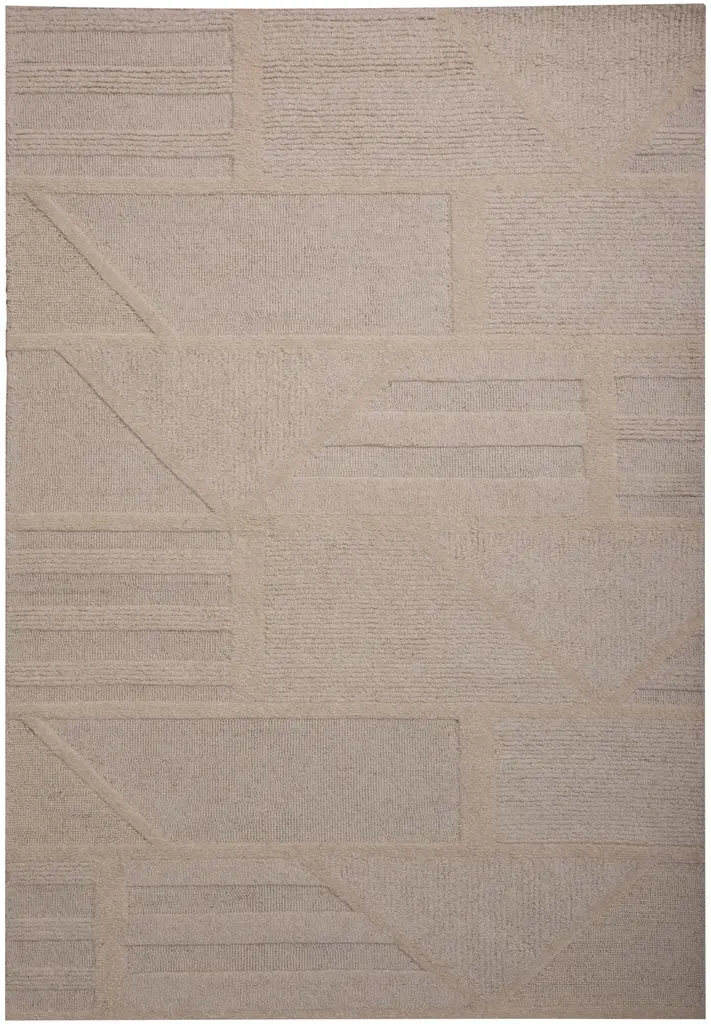 Welcome to modern sophistication. This exquisite rug crafted with meticulous attention to detail–a true testament to contemporary elegance and allure. Adorned with a sophisticated geometric pattern in a harmonious blend of Beige hues, this rug embodies understated luxury and exclusivity. Its neutral colorway makes it a versatile choice for transitional styles and layering, while also serving as a captivating room anchor for any style aesthetic. Hand-tufted with precision, this rug boasts a unique combination of cut and loop pile wool, creating a captivating textured look that is both chic and visually intriguing. Its tight loop pile construction adds depth and dimension to any space, setting the stage for an urban-inspired ambiance. Complete with a durable cotton canvas backing, this rug ensures longevity and stability, making it suitable for high-traffic areas of your home. Handcrafted in India, it exudes an air of refinement and sophistication that effortlessly elevates any room. Whether as a focal point or a complementary piece, this rug's urbane design and textured allure will make a statement that resonates with modern sensibilities. Experience the fusion of style and comfort with this exclusive rug, where every detail speaks of timeless. elegance and modern flair.