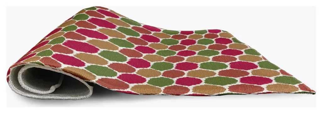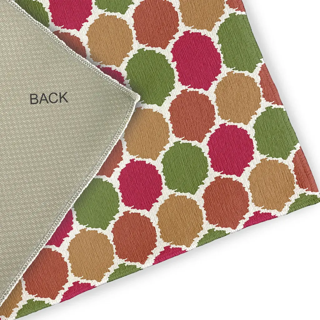 Make your home decor vibrant with a Geometric Indoor/outdoor Rug from our Geo Collection. Everyone will delight in the space defining design brought to your porch, patio, kitchen, or bathroom by this area rug. The artistic and colorful design is printed on a soft polyester base with a skid resistant backing, making it a perfect way to add color, flare and personality to any indoor or outdoor space. To clean, use a mild soap and lay flat to dry.