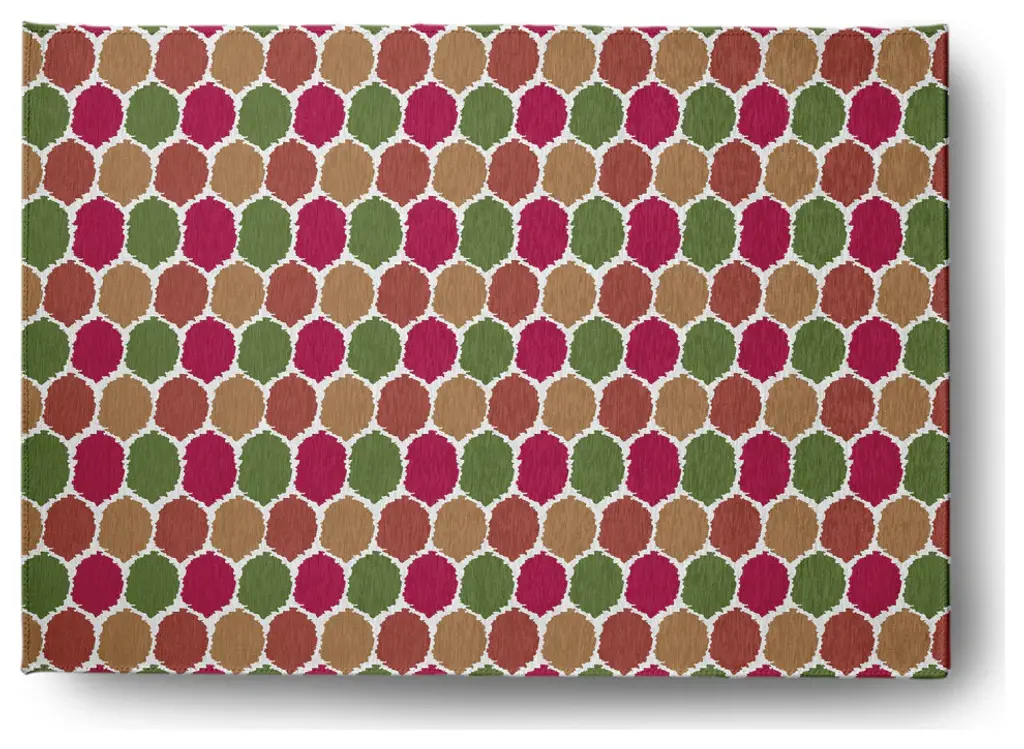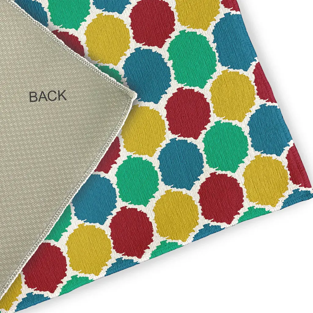 Make your home decor vibrant with a Geometric Indoor/outdoor Rug from our Geo Collection. Everyone will delight in the space defining design brought to your porch, patio, kitchen, or bathroom by this area rug. The artistic and colorful design is printed on a soft polyester base with a skid resistant backing, making it a perfect way to add color, flare and personality to any indoor or outdoor space. To clean, use a mild soap and lay flat to dry.