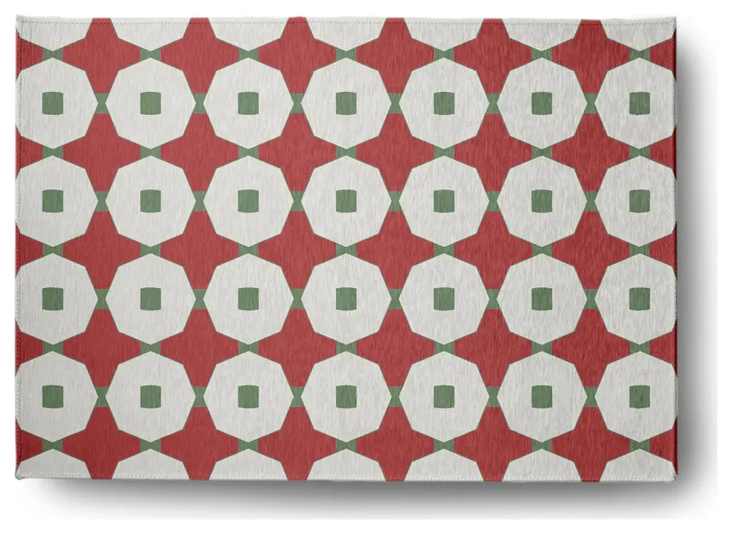 Make your home decor vibrant with a Geometric Indoor/outdoor Rug from our Geo Collection. Everyone will delight in the space defining design brought to your porch, patio, kitchen, or bathroom by this area rug. The artistic and colorful design is printed on a soft polyester base with a skid resistant backing, making it a perfect way to add color, flare and personality to any indoor or outdoor space. To clean, use a mild soap and lay flat to dry.