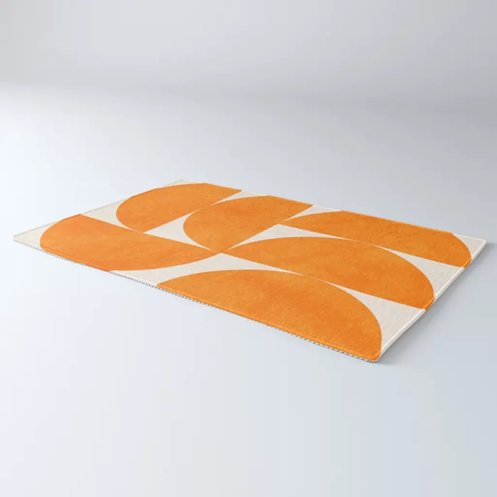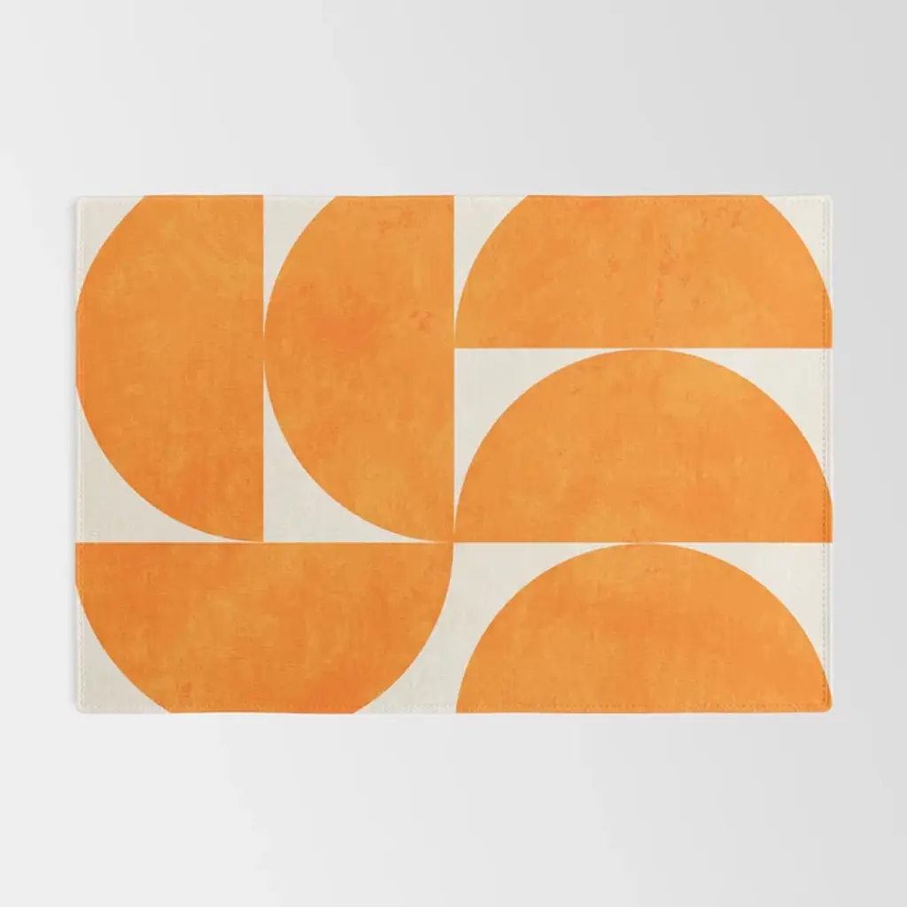 Geometric Shapes Orange Mid Century Rug