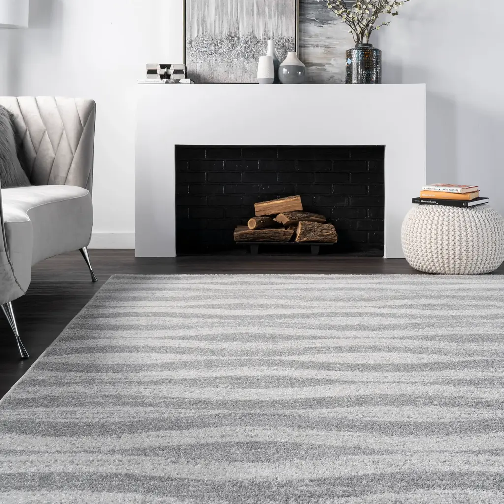 Accentuate your living space with the waves patterned rug that is composed of durable synthetic fibers. This machine made rug comes in various sizes to suit a modern decor. Perfect for adding a dash of modern flair to your decor, this area rug features a calming geometric pattern, ideal for giving depth and dimension to your interior design. Make the most of your time at home with our pet-friendly and easy to clean area rugs.