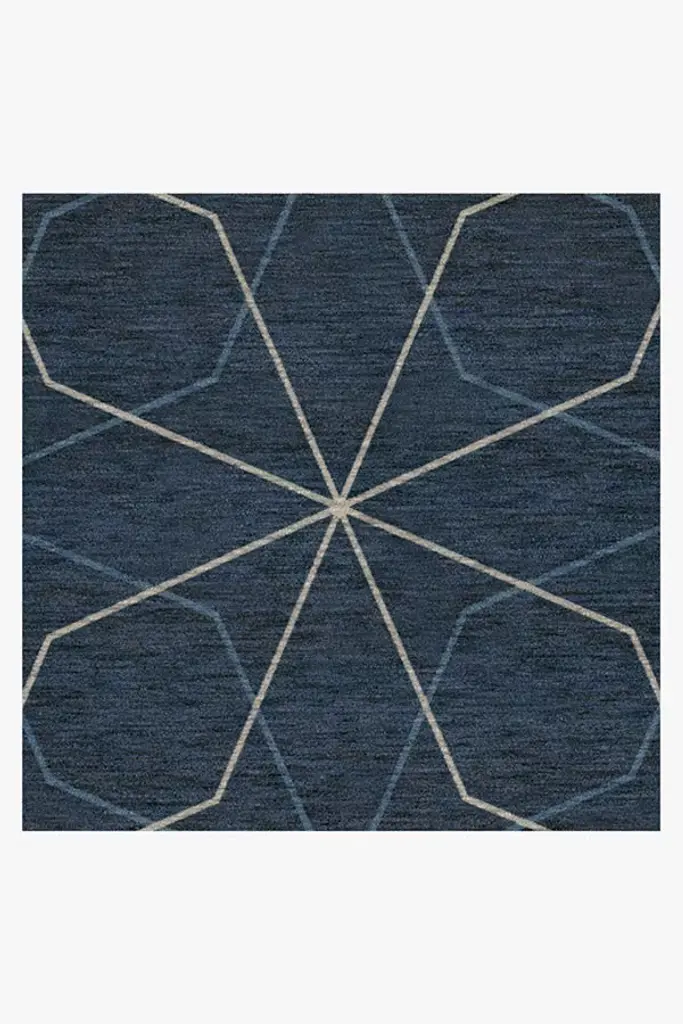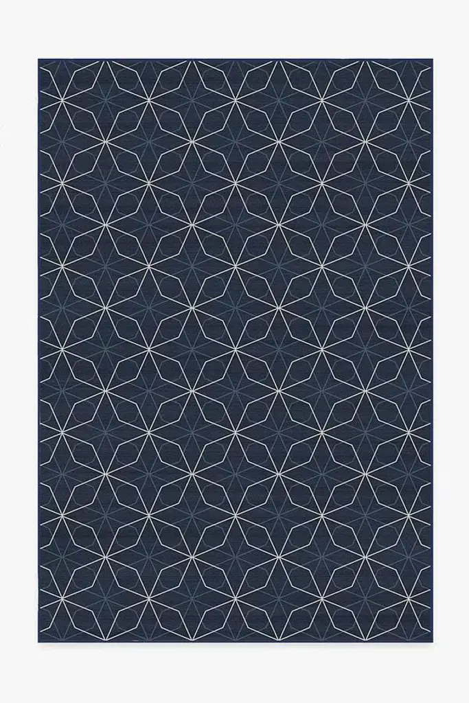 Instill mid-century modern flair into your home with our Geometrix Navy rug. The intricate line details of its industrial style motif is featured in silver taupe and steel blue on a textured navy background. This floor covering will ground any room in your home and is perfect for placing amongst modern, industrial or eclectic style furnishings.