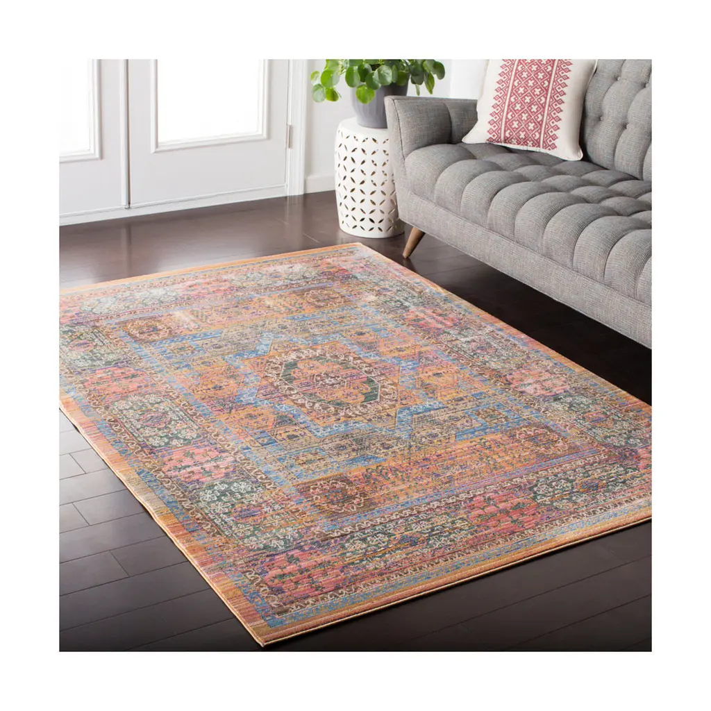 Germili 36 X 24 Inch Yellow And Blue Area Rug, Polyester