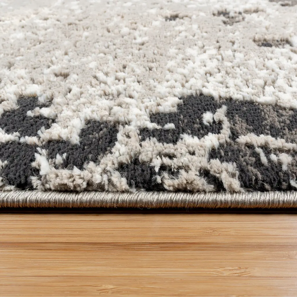 Whether you're looking for a bold look or subtle tone-on-tone pattern, the Kielo collection has everything you're looking for. Made in Turkey, the Kielo Collection is made from soft and plush tufted 100% recycled polyester and polyester shrink materials creating a luxurious high-low detailed rug. Each rug is designed with a modern abstract pattern in neutral everyday colors that can work seamlessly with nearly every home décor style. Each pattern is styled with a unique pattern from linear to distressed abstract. Constructed with 384 thousand points and a pile height of ½" creating a perfect blend of a crisp image and very supple and luscious step under foot. These rugs are family friendly, high-traffic, and easy to clean. Vacuum or spot clean as needed with water or mild detergent to increase the lifespan of your rug.
