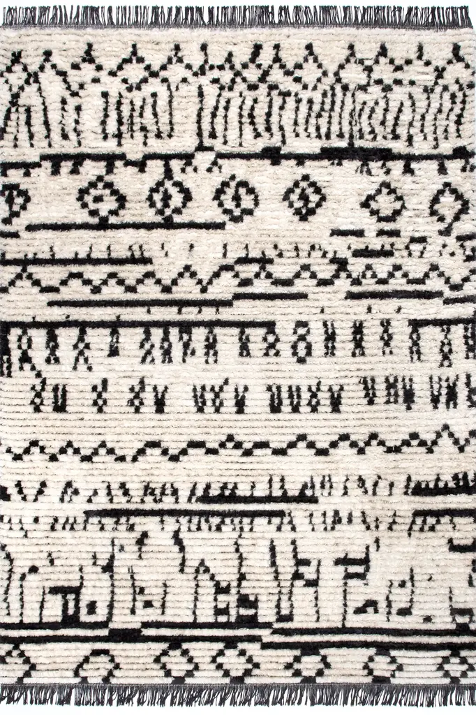 Set the tone of a of casual cozy vibes with this low pile shag rug. Made with neutral colors and patterns that range from modern abstract, argyle, and Bohemian. Made in Turkey, the Rafe Collection is made from soft, deep, and plush tufted polyester fibers creating a luxurious short shag area rug. Each rug is designed with a different pattern in neutral everyday colors that can work seamlessly with nearly every home décor style and accented with a fun and flirty fringe. Constructed with 192 thousand points and a pile height of ¾" creating the perfect rug to cozy up to and very supple and luscious step under foot. These rugs are family friendly, high-traffic, and easy to clean. Vacuum or spot clean as needed with water or mild detergent to increase the lifespan of your rug.