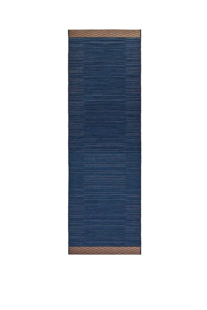 Interwoven yarns, knits and textures combine to create the GUNA rug: made with a sophisticated knitting technique, an artisan process applied to industrial looms, it revives an artisan pattern and restyles it with a contemporary twist. A very fine polypropylene yarn, in two contrasting colours, is woven to create a rug available in two versions, one with a striped texture and a more decorative, double-faced version. Available in several sizes, it comes in three colours, Blue, Red and Natural, and it is also suitable for outdoor use.