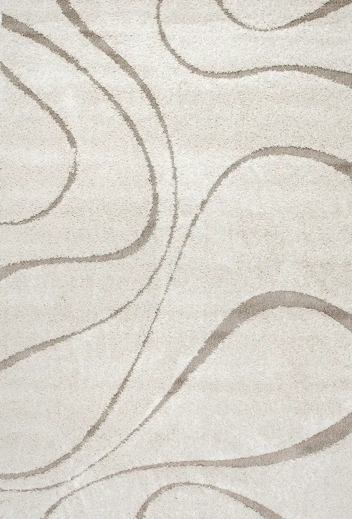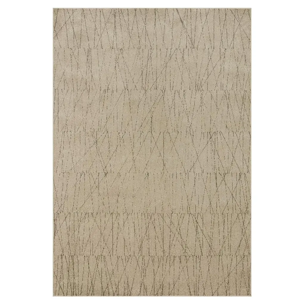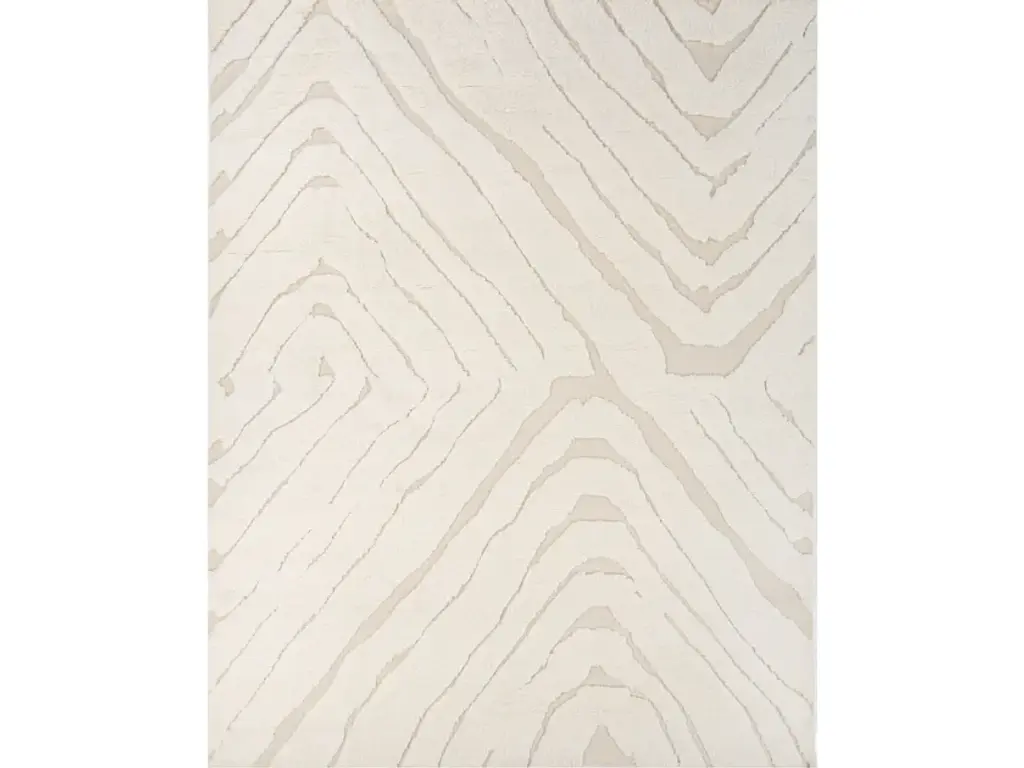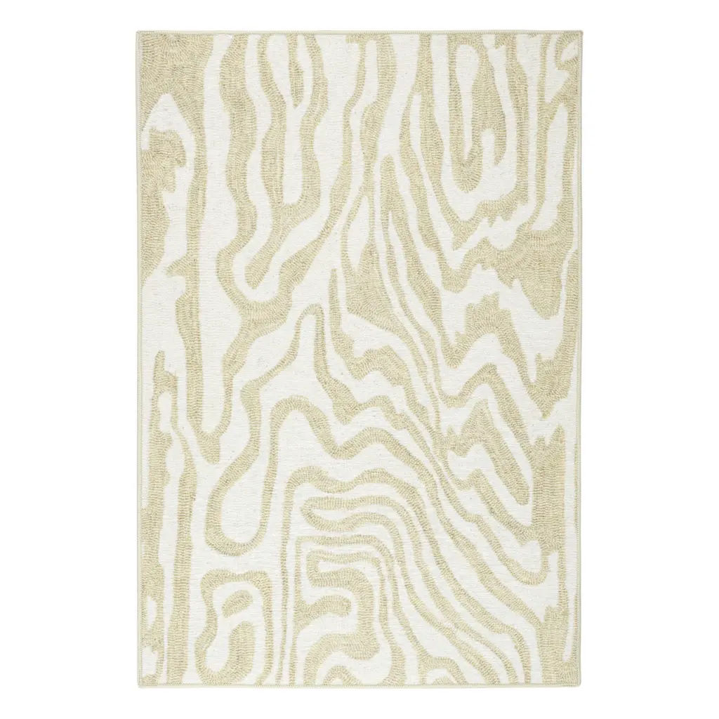 The Gesso Jute Rug from Ferm LIVING showcases hand-spun jute fibers woven into an organic base that supports raised woolen lines flowing across the surface. These textured elements create pathways of softness against the rougher jute background, adding tactile contrast underfoot. The abstract pattern emerges through the interplay between materials rather than applied color, letting natural fiber tones dominate the overall appearance. This handwoven construction means each rug develops its own character through slight variations in tension and texture, creating a floor covering that feels personal and artisanal.