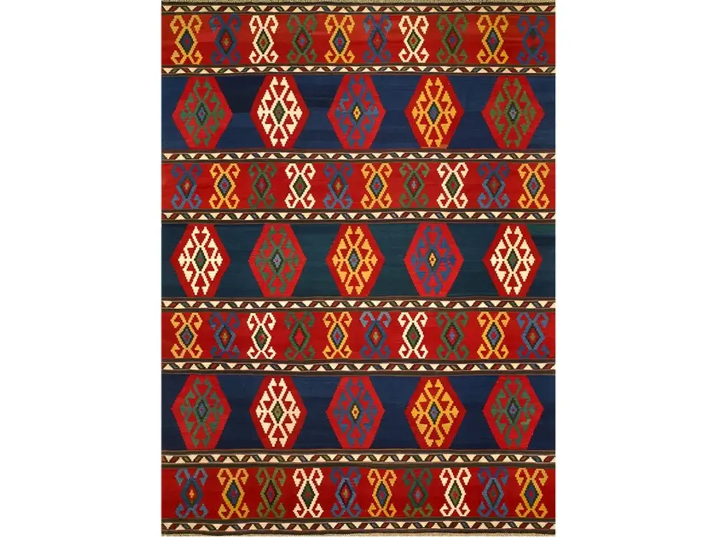 Ghashgha’i 'Medallions' Kelim is a rectangular wool rug.The tribal flatweaves or kilims (known as gelims in Farsi) are traditional colourful weavings with bold geometric and floral designs. They are woven by Luri and Ghashgha’i nomads who interpret centuries’ old designs and motifs that have been handed down from generation to generation.