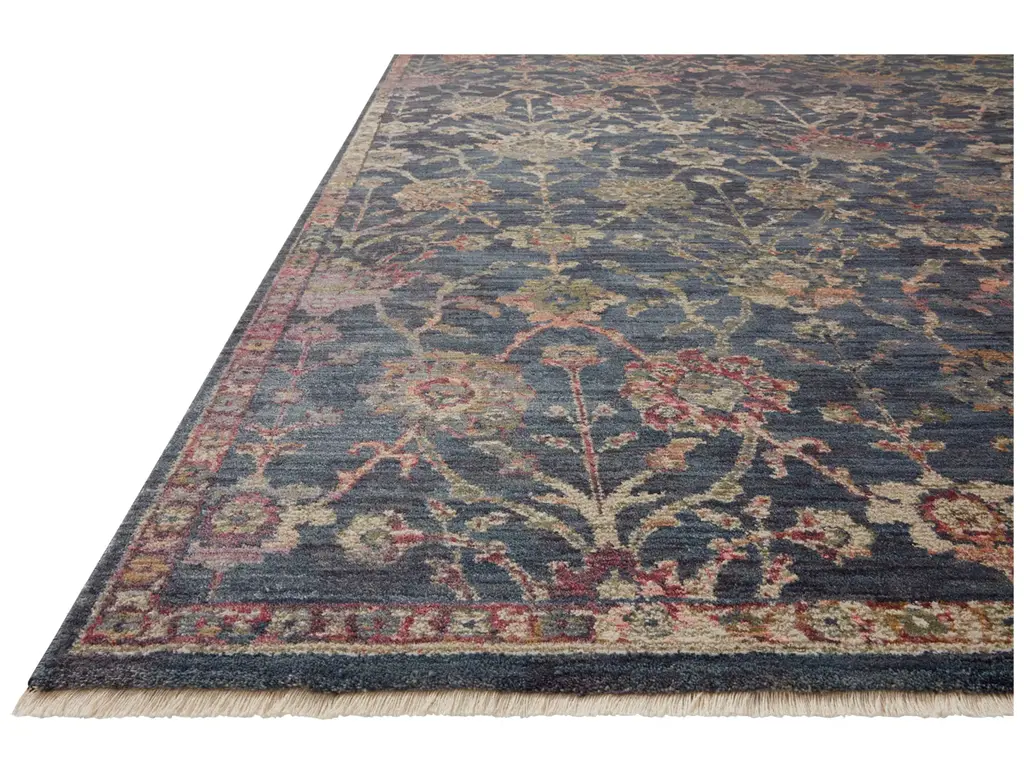 The Loloi Giada Navy Multi Area Rug features a beautiful botanical pattern in softly-faded hues for vintage character. This transitional-style rug is machine made in Turkey of durable synthetic yarns for years of stylish wear.