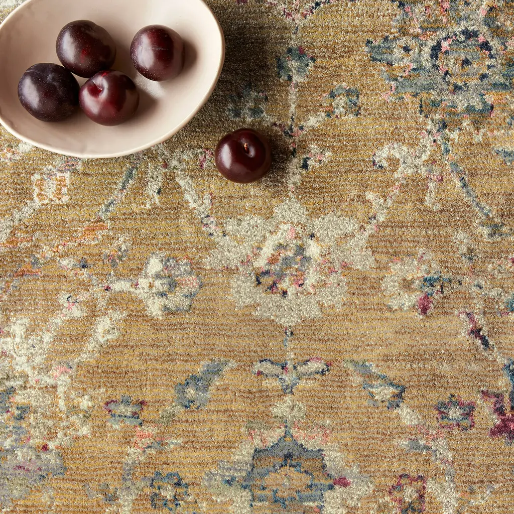 Adorned with gently faded floral motifs on a distressed golden ground, the Giada rug blends a timeless vintage-style design with a durable fabrication. Refreshing ornate botanical patterns with a neutral-friendly palette, this artful area rug brings a look of luxury to modern and contemporary settings. Available in an array of sizes with a soft pile that will not shed, Giada is ideal for high-traffic areas in homes with children and pets.