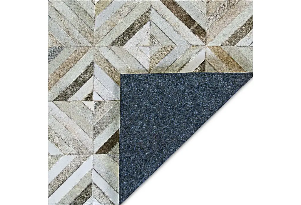 Small pieces of hair-on-hide leather are thoughtfully arranged and stitched to create this rug's impressive allover design. Sophisticated and luxurious, this piece is ideal for adding incredible natural texture to any decor. We recommend a rug pad to keep your rug securely in place.