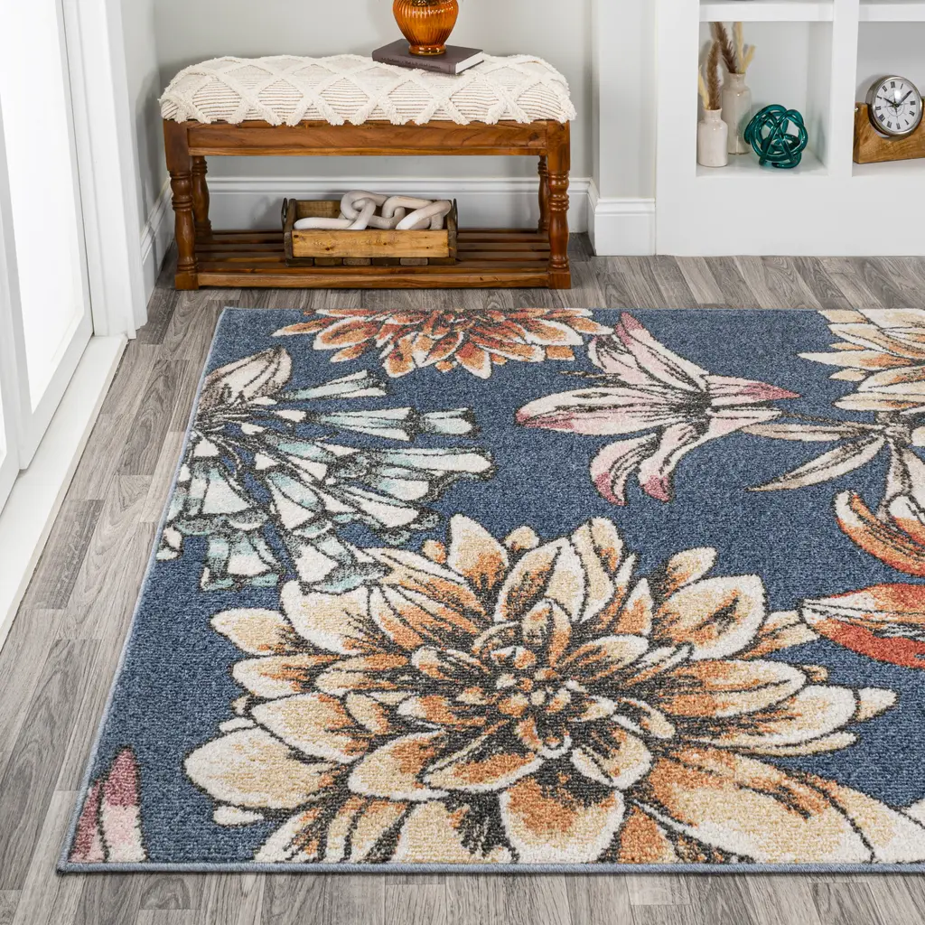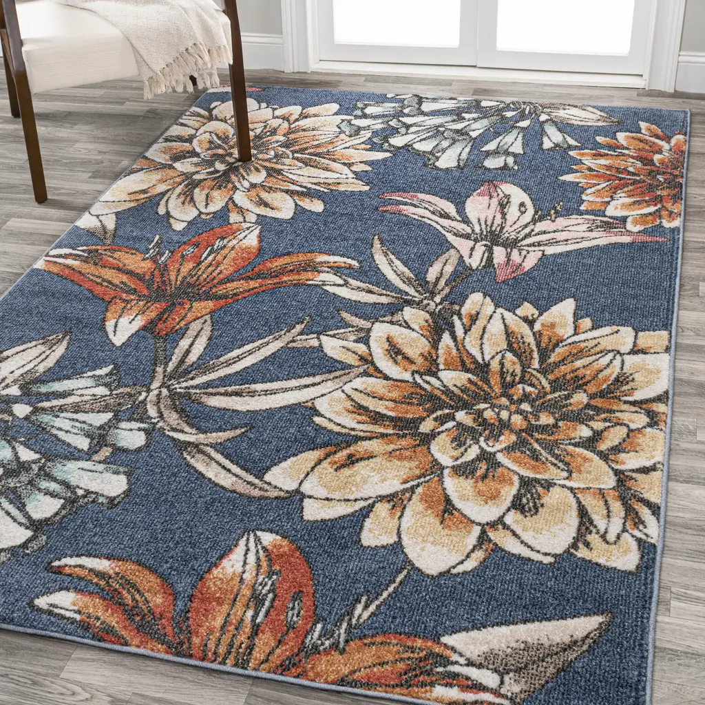 Giglio Modern Botanical Flower Area Rug - Blue,orange,cream / 5 X 8