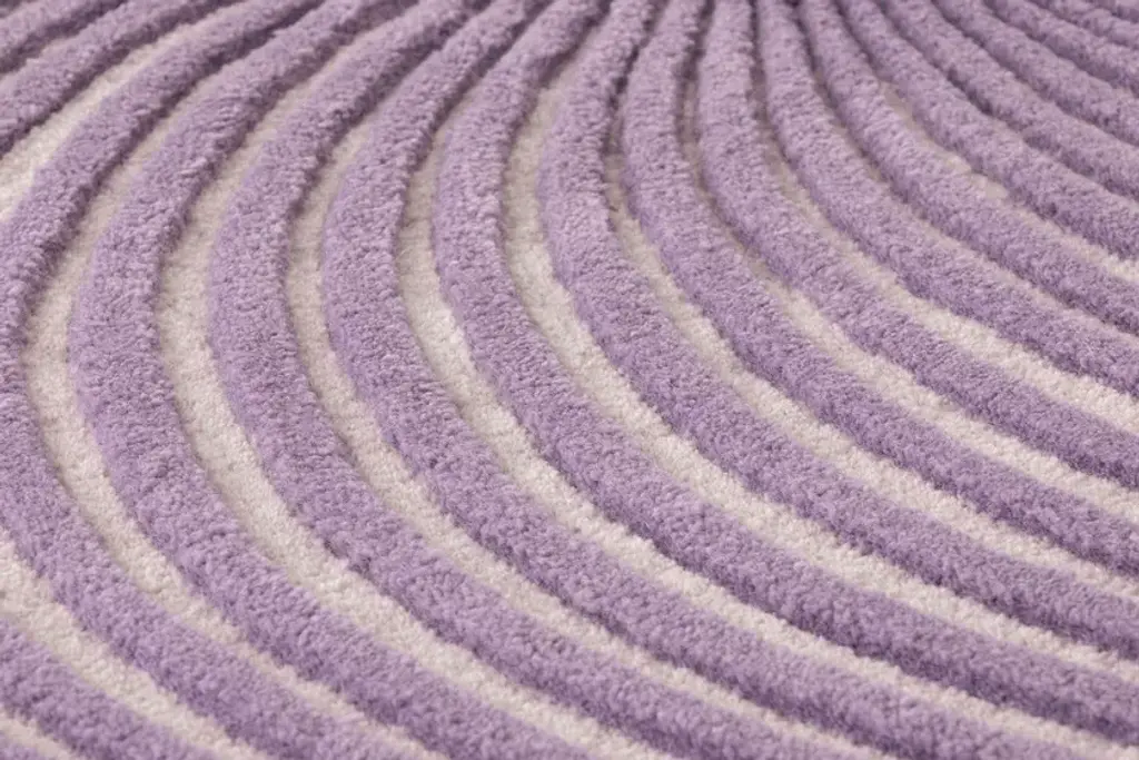 Giro is a design by MUT Design for GAN, a new chapter in the alliance that created the award-winning PLY collection. Artisan tradition meets contemporary design in Giro, a collection of two types of rugs that use the hand-tufting technique to achieve graphic effects with astonishing precision and an Op-Art vibe. This hand-tufting method provides the creative freedom needed to bring this high-precision design in virgin wool to life. The minimum time required for this meticulous work, carried out entirely in India, is three days for the hand-tufting process, and three days to complete the carving work line-by-line - slowly but surely trimming with scissors.Giro’s design is based on a succession of mathematical curves which, thanks to the slight variation of their shapes, create the optical illusion of a tube rolled back up on itself. The different textured layers which have been crafted increase the sensation of depth and volume within the structure, which is already provided by the graphic grid. The Giro series comes in two versions: a long, curved version (132 x 324 cm) and a larger version with a twisting silhouette (264 x 363 cm).Giro rugs are available in three main colours: Lilac, Peach and Black&white. They are three impactful shades that contrast with the white base and offer different visual nuances depending on the density of the curves.FIBRE COMPOSITION100% wool MANUFACTURING TECNIQUEHand Tufted