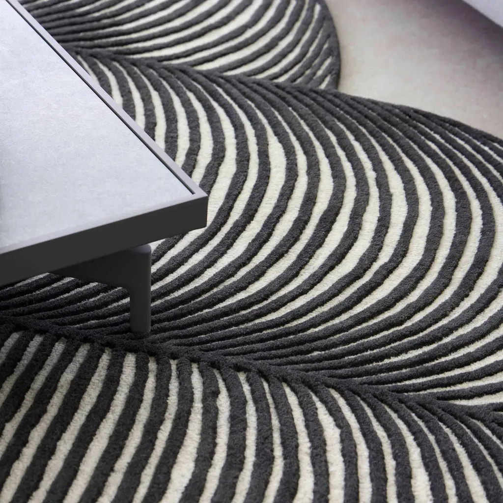 Create a captivating space filled with contemporary charm with the Giro Rug from Gan Rugs. An elegant, hand-tufted rug artfully crafted with meticulously-proportioned mathematical curves, it's intricate meandering textures and reliefs evoke a dynamic feel, imparting a playful sophistication to your living space. Luxuriously crafted with premium virgin wool, Giro adds a touch of modern art to your favorite floor spaces. Highlights