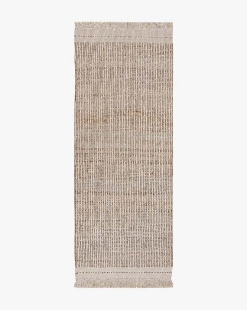 Bring texture to your space with woven natural materials. Crafted from jute in a sophisticated striped pattern, the Girona Cream Handwoven Jute Rug is all about the details. From its tonal jute variations to its two and a half-inch off-white fringe, this rug brings subtle hues and dimension to your home, whether styled in the hallway or used to anchor your living room furniture.