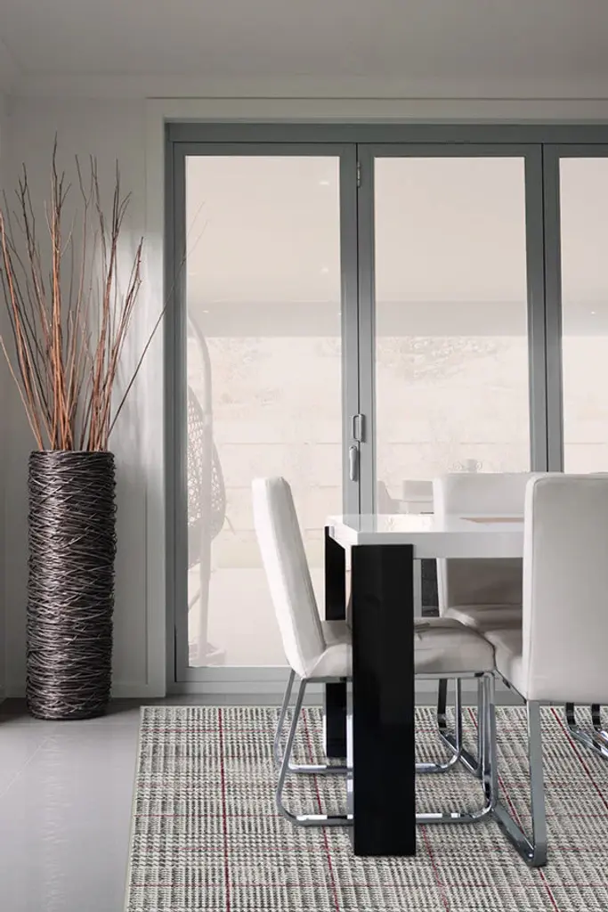 The classic Scottish pattern Glen Plaid layers a sophisticated red stripe against a black and white check background.