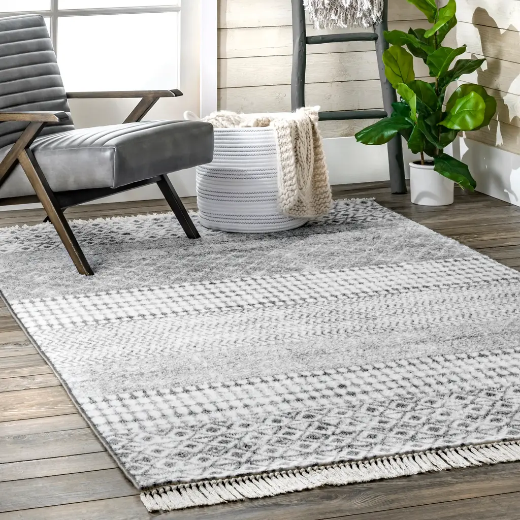 Glen Striped Non-Slip Backing Rug | Grey - 4' 4" X 6'