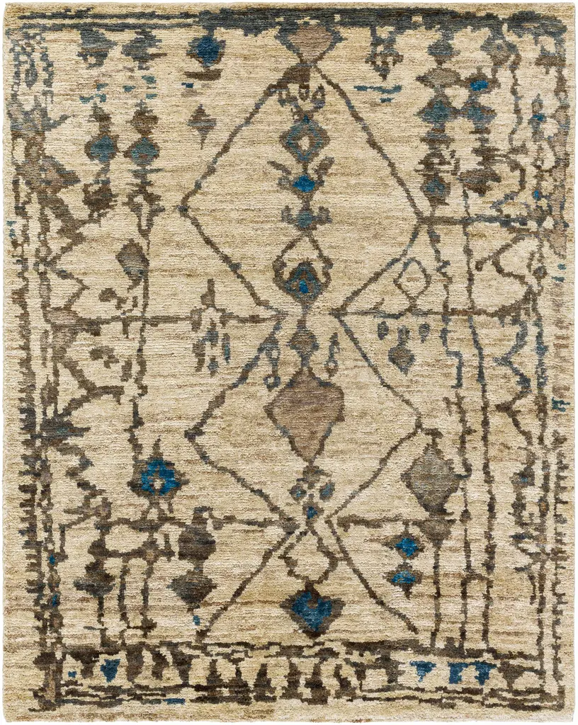 Collection: Glide Colors: Aqua, Beige, Taupe, Blue, Tan Construction: Hand Knotted Material: 100% Jute Pile: Medium Pile Pile Height: 0.39" Styles: Transitional,Bohemian Made In: India Thickness: 0.47" Price Range: $$$$$ (Affordable)
