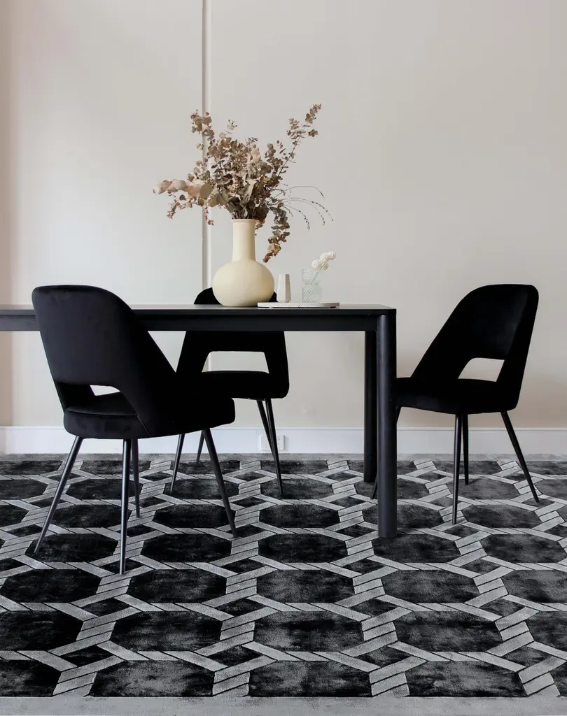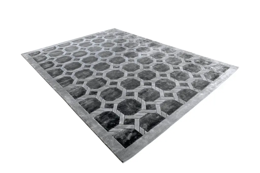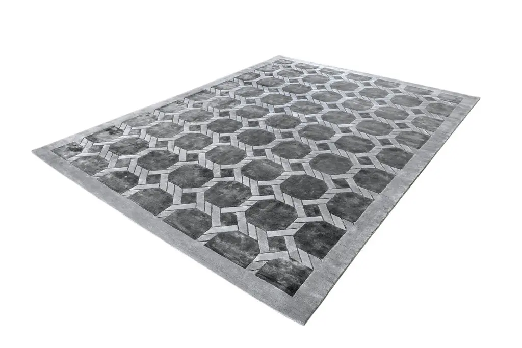 "In the GraphX collection, the purpose of geometry of design is to reveal visual relationships, that have foundations in the essential qualities such as proportion and growth patterns and to lend insight into the design process and give visual coherence to design through visual structure.Designed by Hands In-house Design Team.Hand-knotted in Botanical silk. Available in Silver Taupe color in sizes :170 x 245 cms - $2,635180 x 275 cms - $3,234245 x 305 cms - $4,791275 x 365 cms - $6,467305 x 425 cms - $8,383.