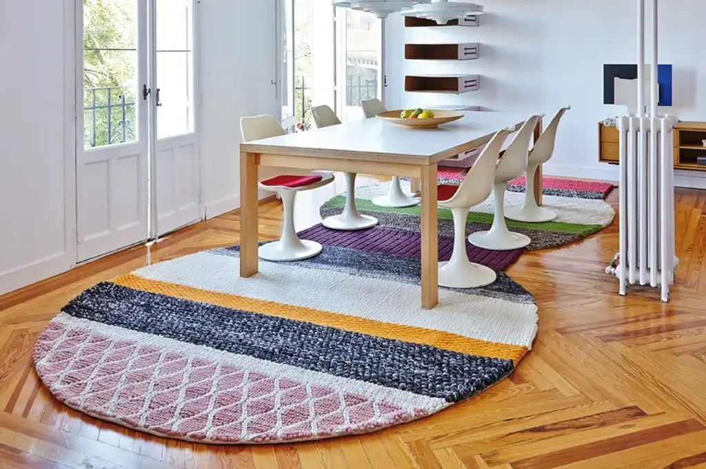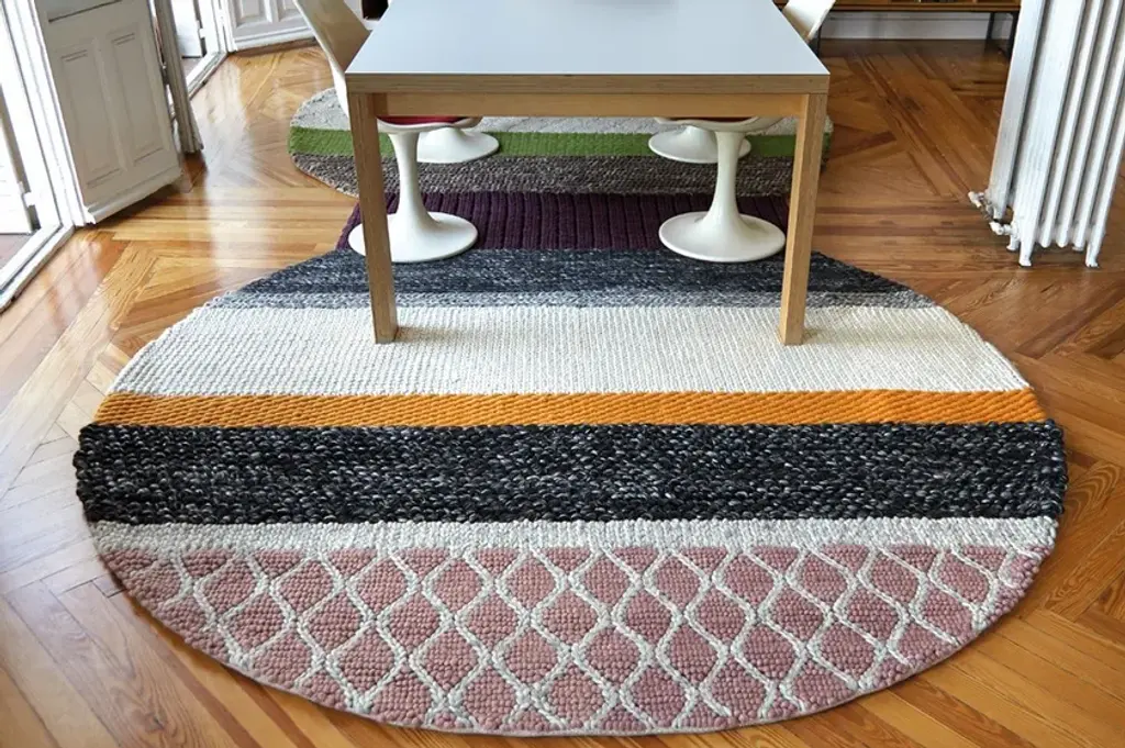 Fibre composition: 100% new wool.Backsizing: Cotton.Total weight approx: 5'5 kg/m² - 1'1 lbs/ft²Total height approx: 40 mm.Manufacturing technique: HAND LOOM.
