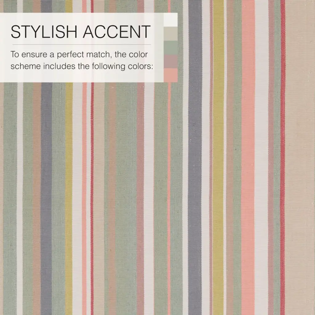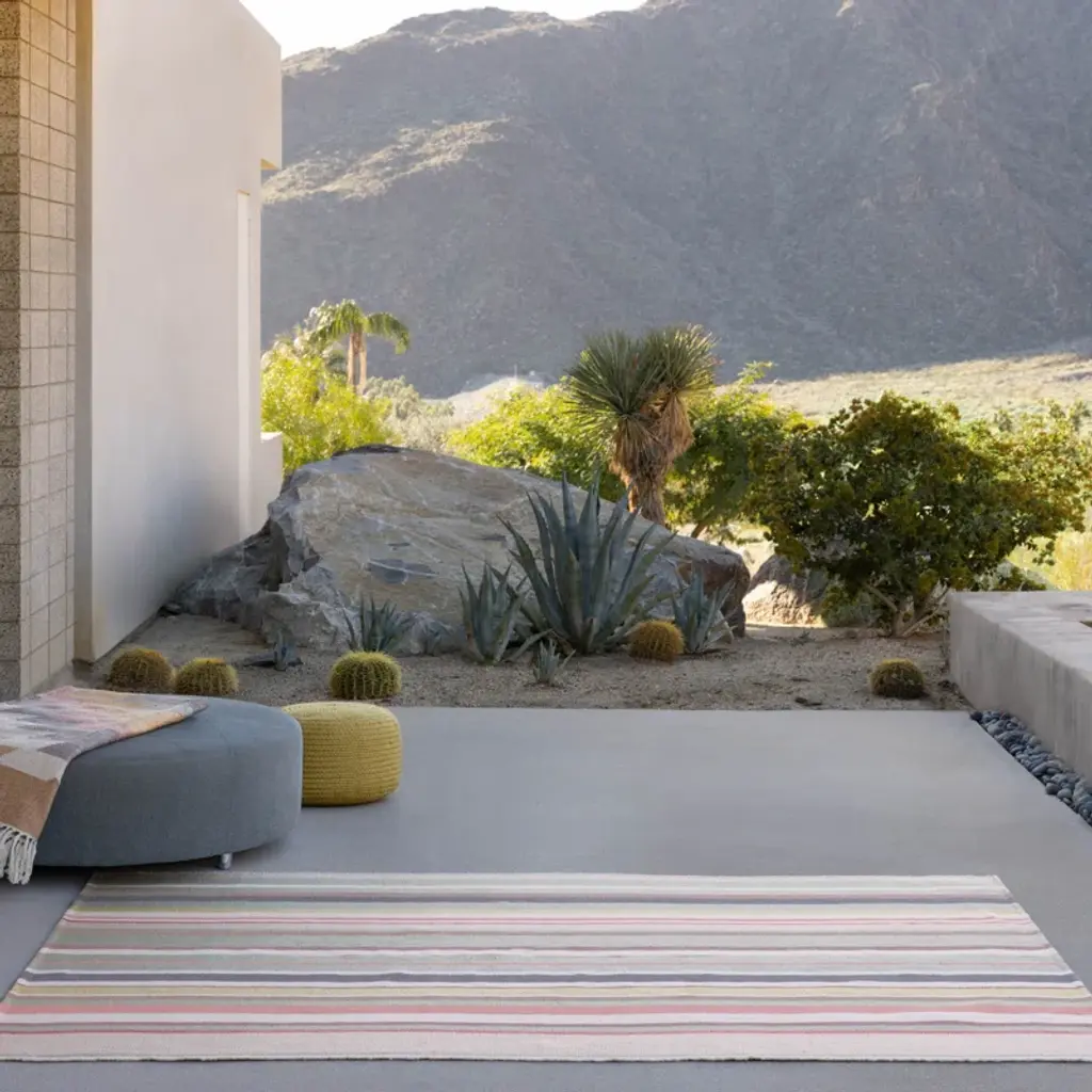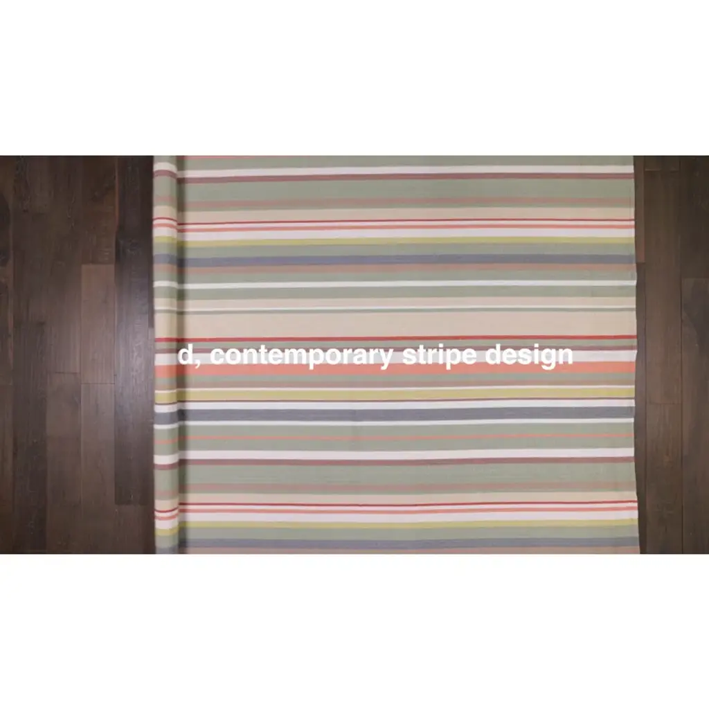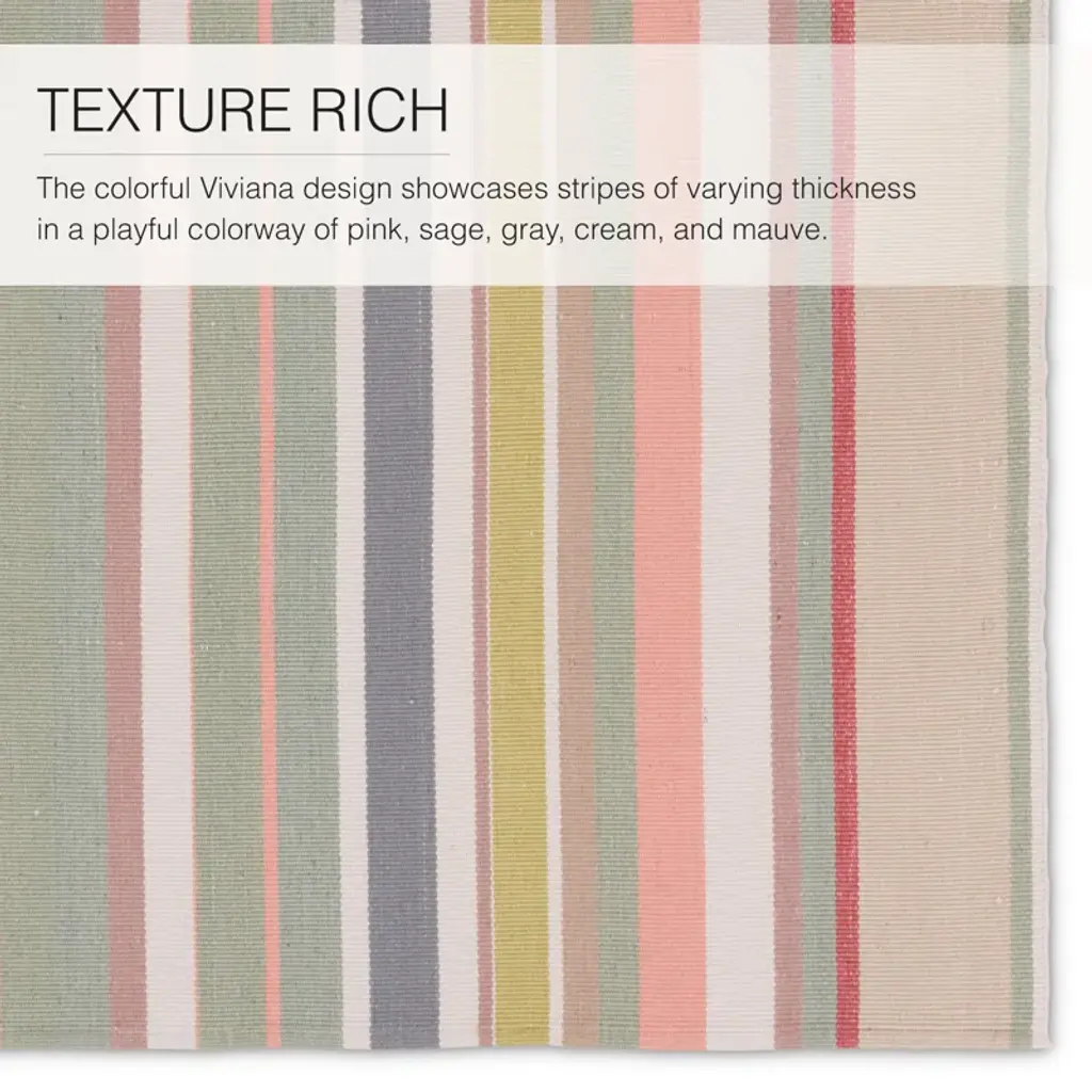 The woven Godina collection features a dynamic and charmingly classic cabana stripe, complemented by cool, tonal hues or chic pastel colorways. The colorful design showcases stripes of varying thickness in a playful colorway of pink, red, blue, cream, and mauve. Crafted to withstand high-traffic areas or livable patio spaces, these stain and water-resistant, flatweave rugs are built for performance with finely woven and durable polyester.