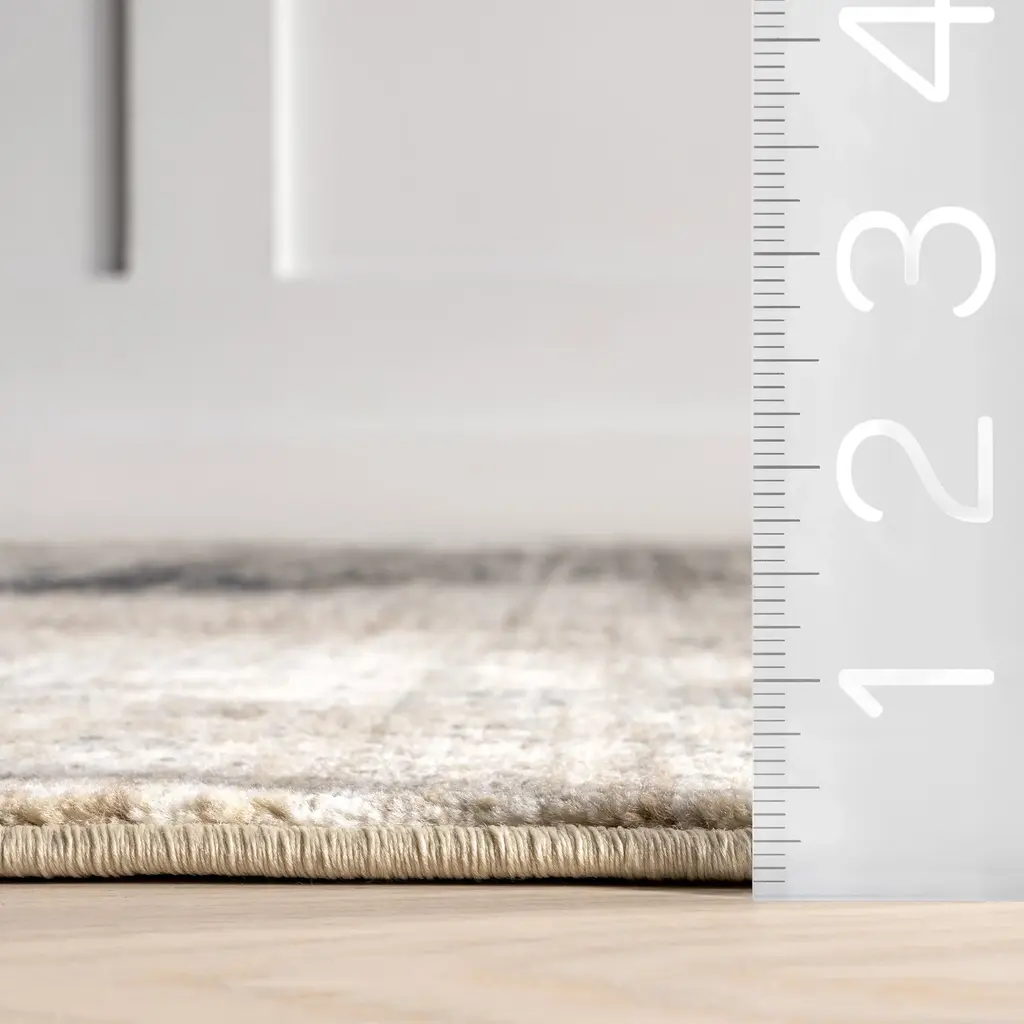 Chic. Artful. Interesting. The Gokyo Abstract Rug is synonymous with luxury and high style. Cool, taupe-y neutrals give way to the central midnight hue for an exceptionally striking look. Add it to your space for a couture look all your own.