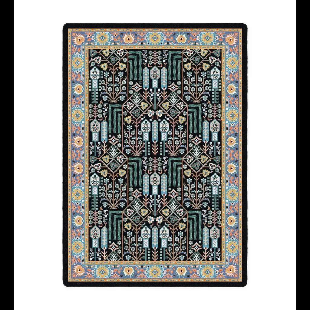 Gol-o-Bolbol Baluch Soumak 1 is a rectangular wool rug.Zollanvari introduced ‘Baluch Soumaks’ to the market for the first time in collaboration with Baluch nomads. These weavings combine kilim, soumak and pile weaving techniques to create a multi-textured jewel-like surface that gives the rugs depth and a three- dimensional appearance. They are now being woven in the southeast,, home to Afshar nomads who were originally from Turkey. Woven in wool, we have added silk to highlight the design motifs. The colour palette we have recently developed uses lighter shades such as creams and pale greens to give these rugs a modern tribal look.Two new collections that represent a fusion of various tribal traditions – that of Berber carpets of the Beni Ourain people and Zigorat carpets of the Fars region – will be launched in 2017. The new Maghreb’i Zigorat carpets combine the style and quality of the weavings of the nomads with Berber designs from the Rif Mountains region of Morocco. The Zigorat Pelt Collection fuses the technique of Zigorat carpets with high pile and flatwoven (kilim) ends, the design motifs of traditional Gabbehs and the animal pelt effects of Berber rugs. Both collections are designed for contemporary interiors.