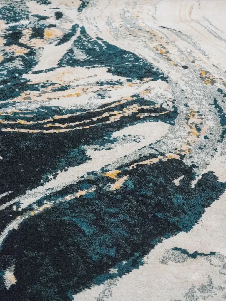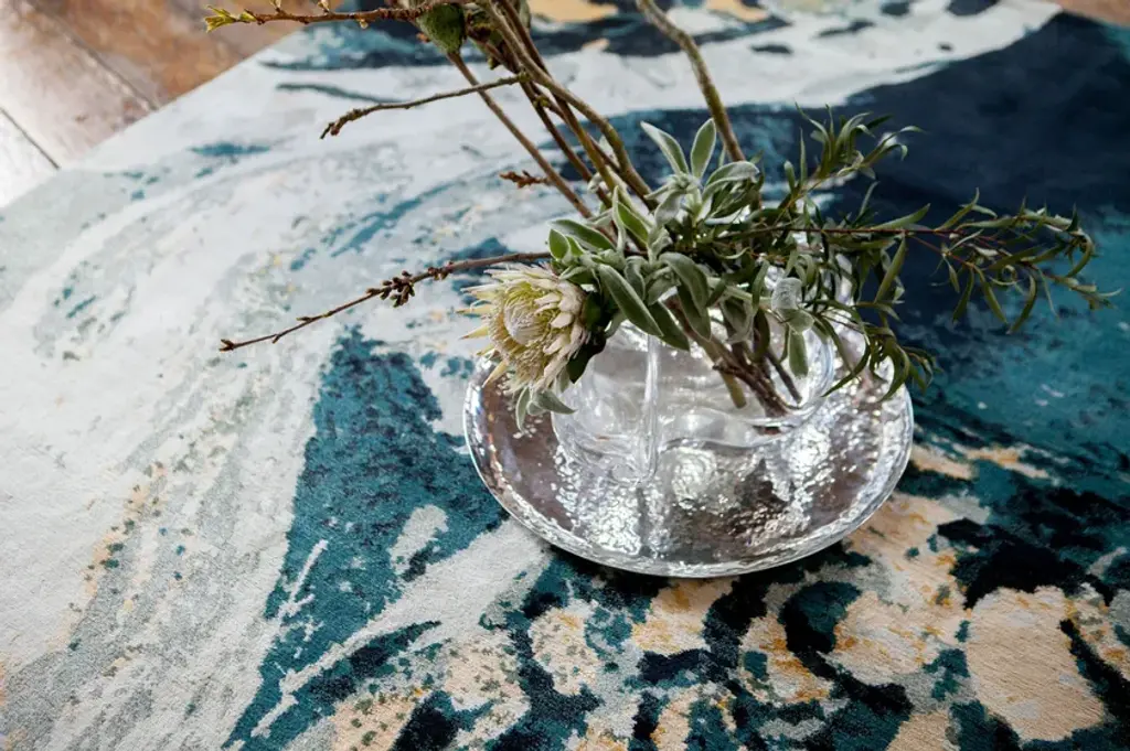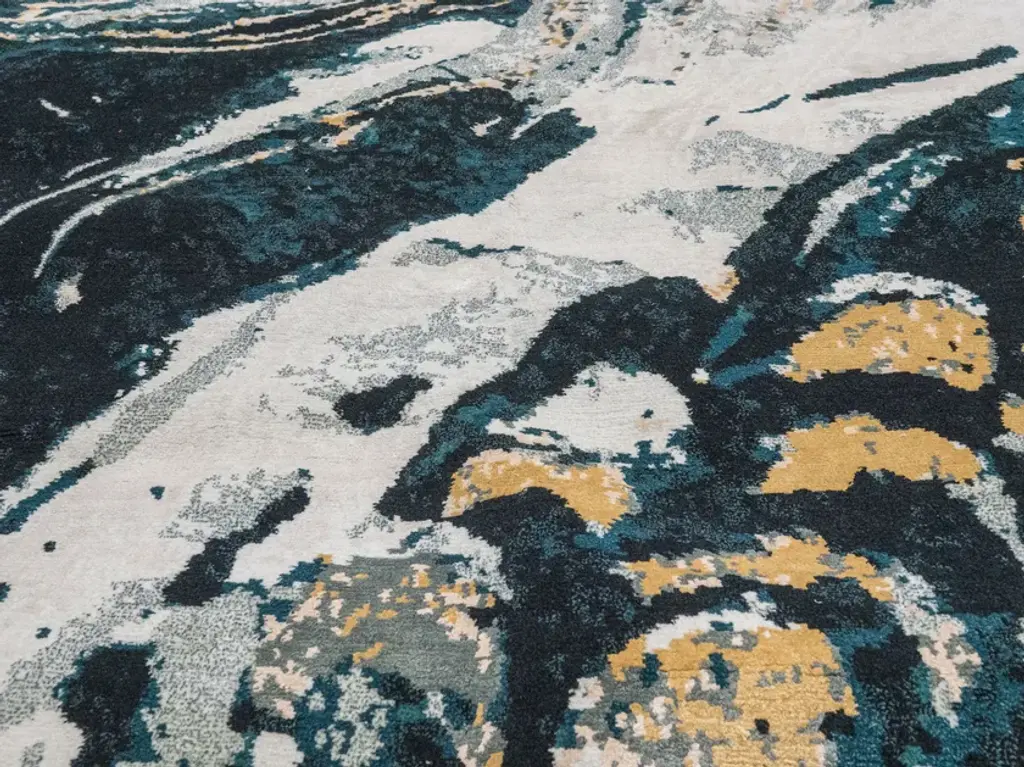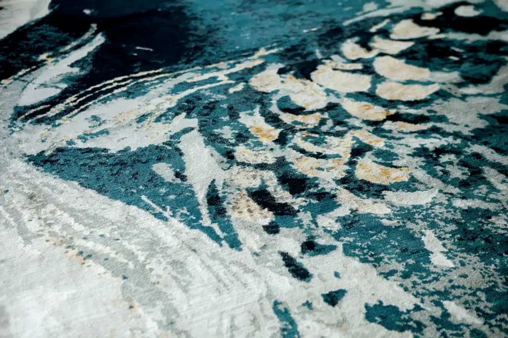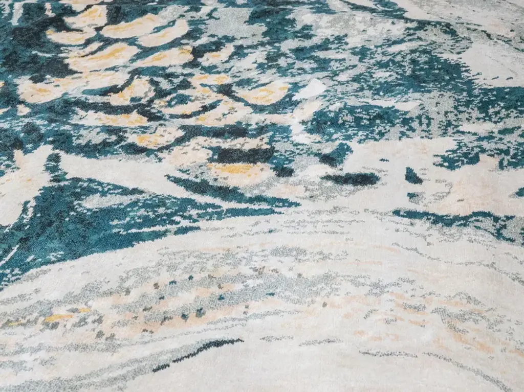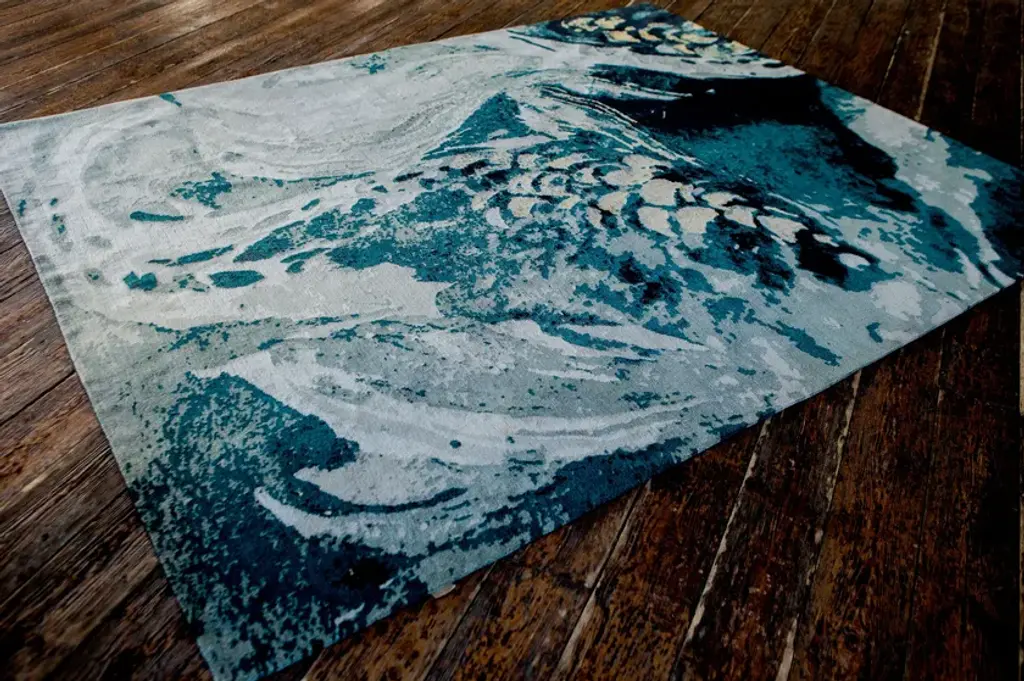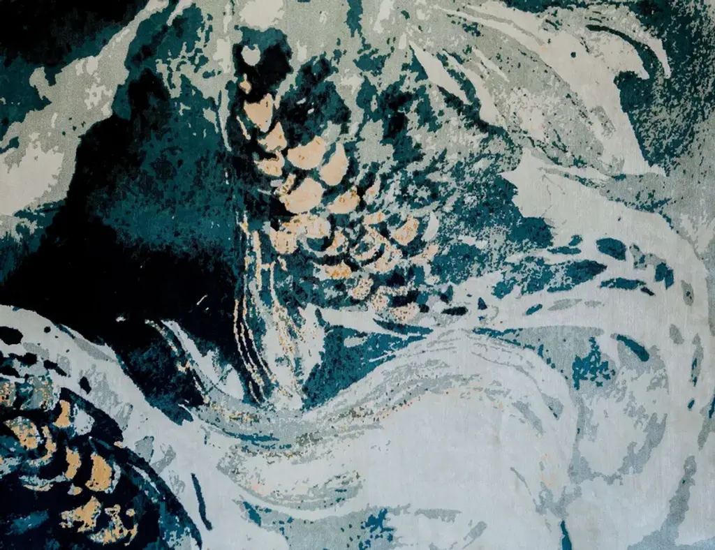 Material: Wool, SilkKnot Density: 100 knots/inch²Pile Height: 4mmTechnique: Hand-knottedCustom sizes and colors on requestJapanese watercolor paintings inspire the Koi Pond capsule collection. The rug's color scheme preserves the color transparency intrinsic to watercolor paintings, creating a soft and ethereal effect. The curved lines and color spots add an element of movement, giving the impression of persistent motion.Th Gold Fish rug is hand-knotted from New Zealand 82% wool and 18% silk, with 100 knots per inch and a 4mm pile height. The challenge was to convey the watercolor technique in the rug, which is managed using a unique thread mix. Each knot in the carpet is made up of a track composed of three bundles of nine threads.