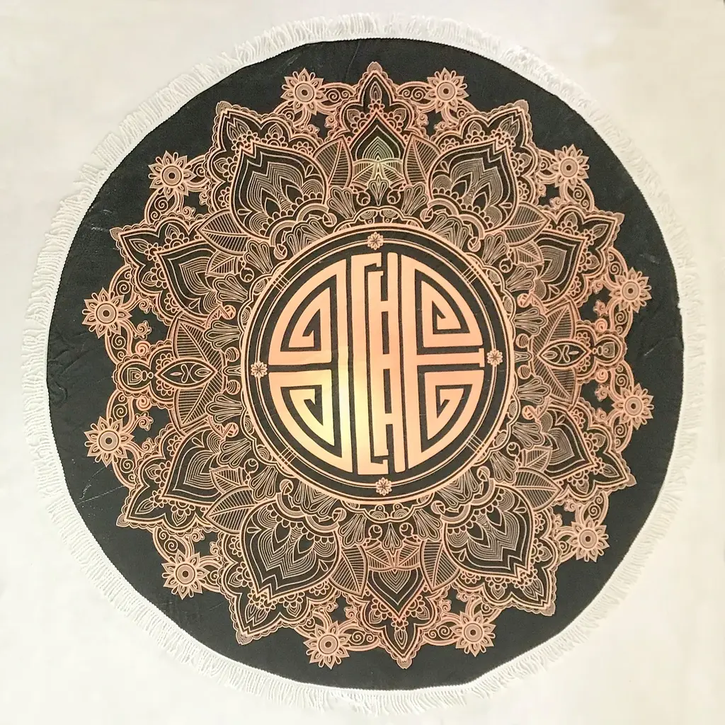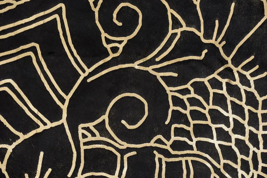 Gold Metallic Boho Batik Pattern Black Cowhide Rug, Medium