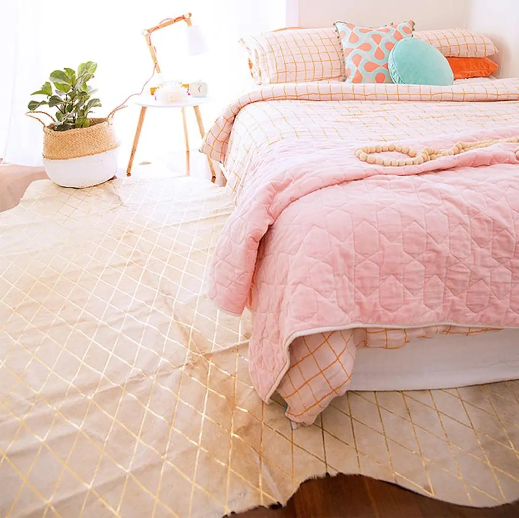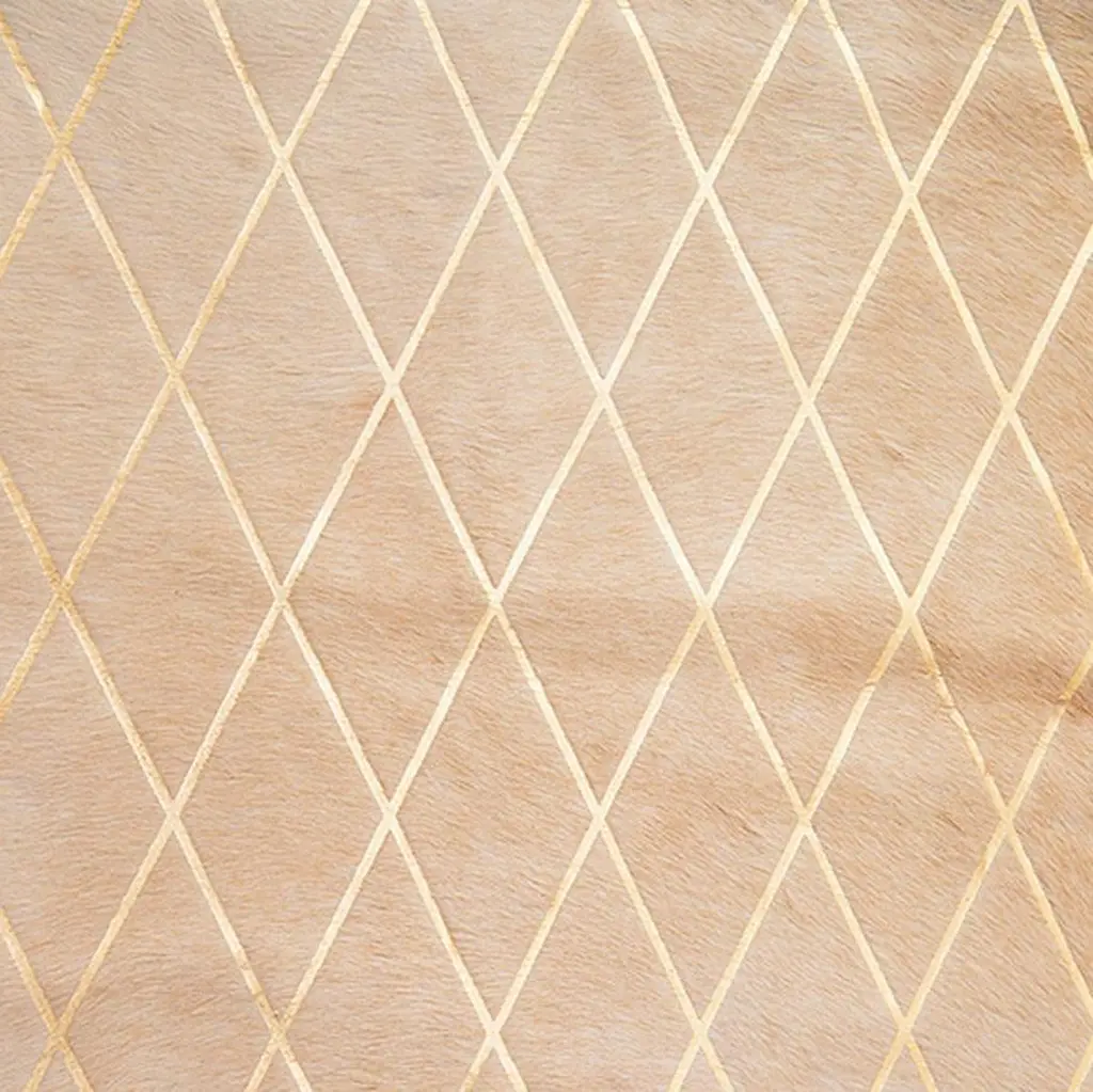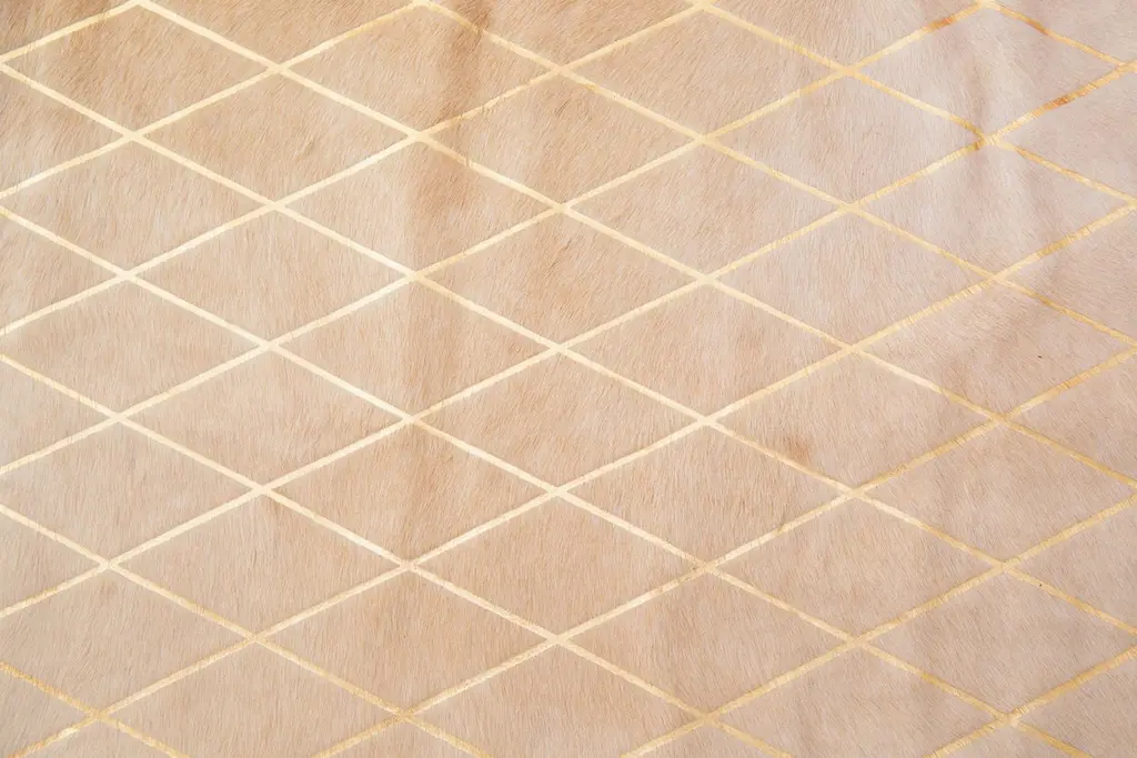Gold Metallic Diamond Pattern Caramel Cowhide Rug, Large