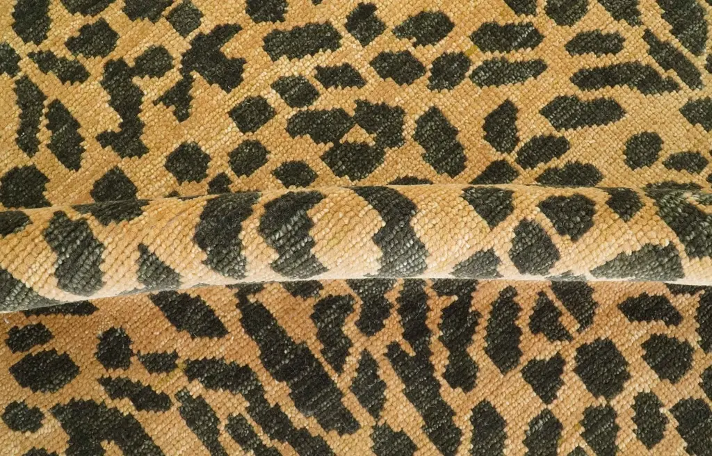 Golden-Brown And Charcoal Modern Leopard Design Hand Knotted Multi Size Wool Area Rug - 2.6x12