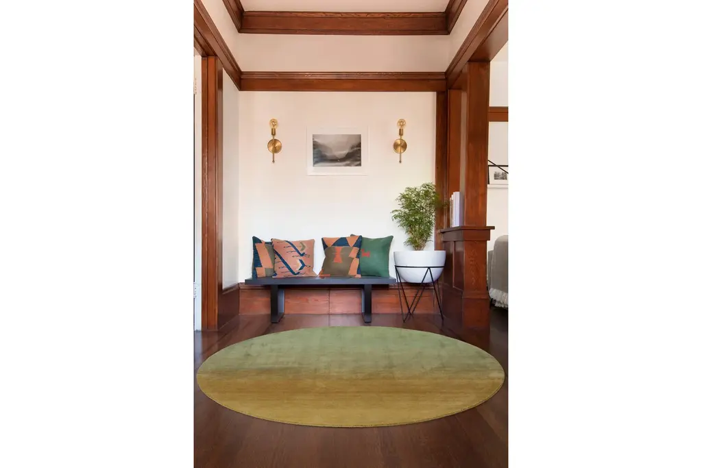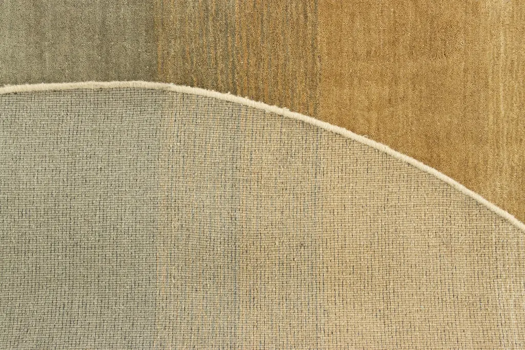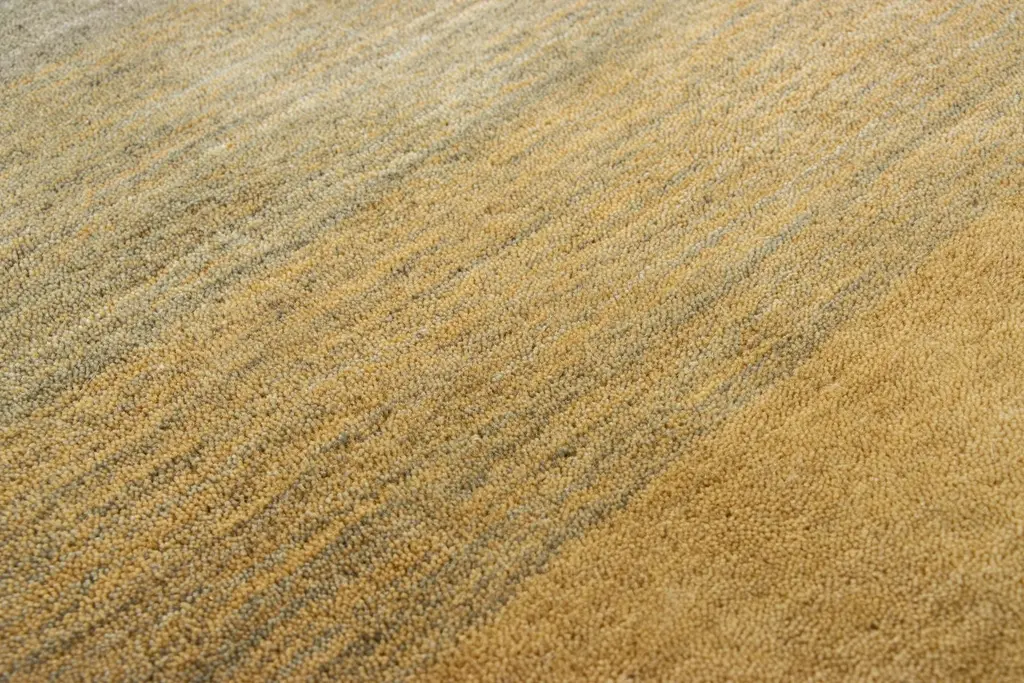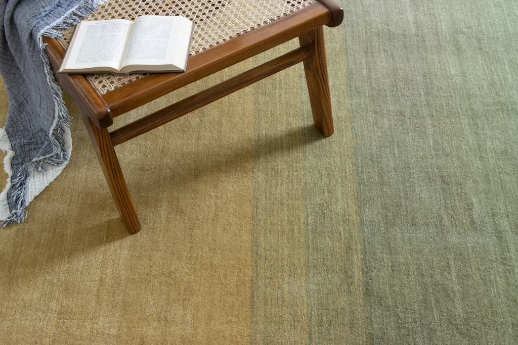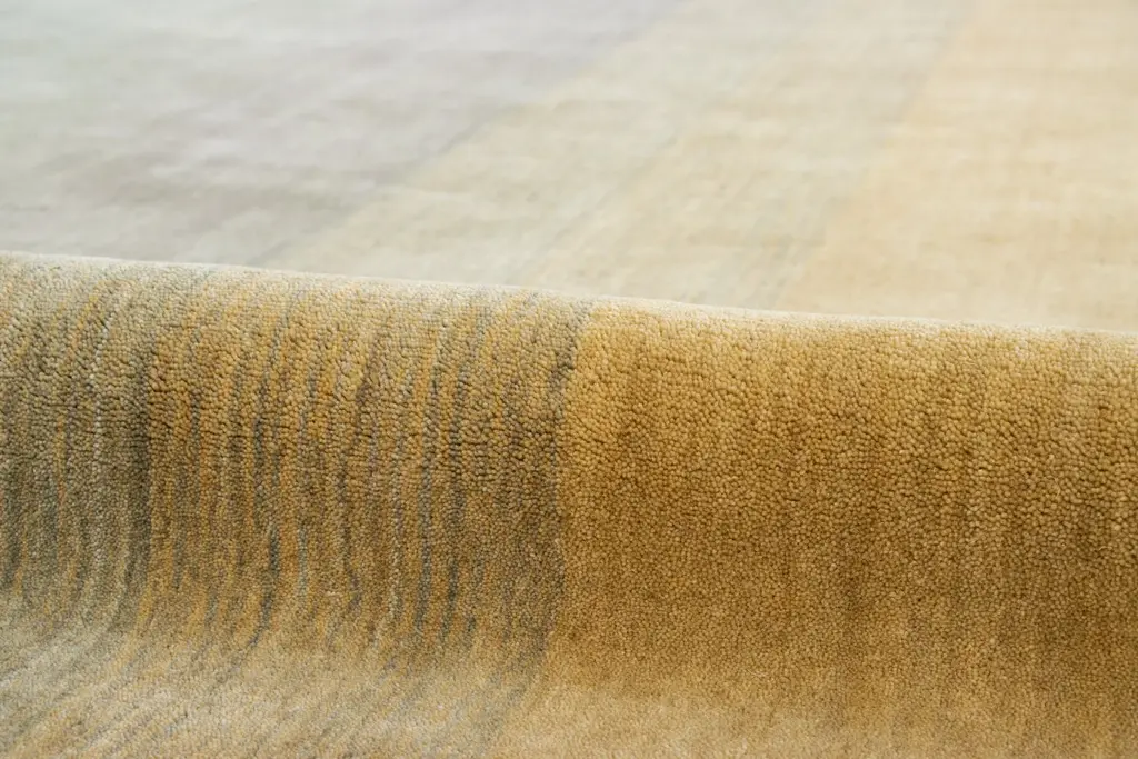 To create Ombré’s gradient, we soak wool yarn in warm water before dyeing. This step opens the fibers, which optimizes their color absorption. Each rug is blunt cut, washed, and rolled out to dry. Weavers shear the pile for uniformity and enhanced softness underfoot.