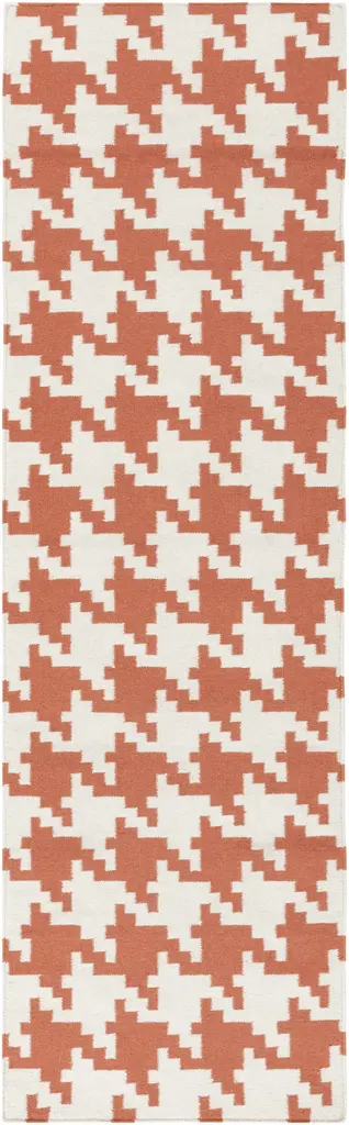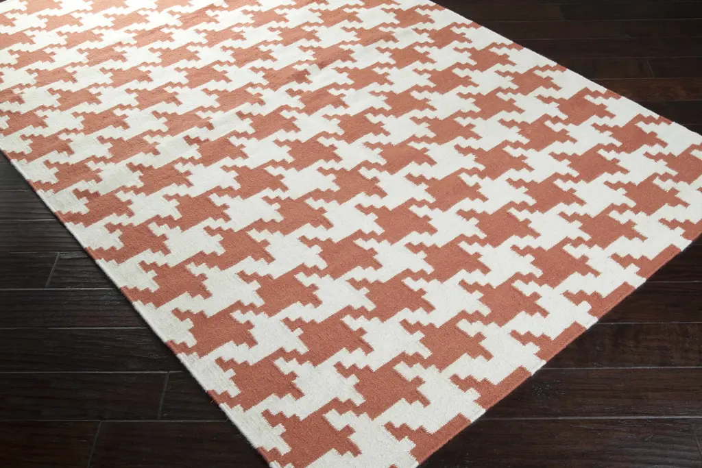 Collection: Goldthwaite Colors: Burnt Orange, Peach Construction: Hand Woven Material: 100% Wool Pile: Medium Pile Pile Height: 0.3" Styles: Transitional Made In: India Thickness: 0.16" Price Range: $$$$$ (Most Affordable)