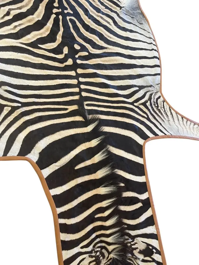 Gomez Zebra Hide Rug Trimmed In Burnt Orange Italian Leather