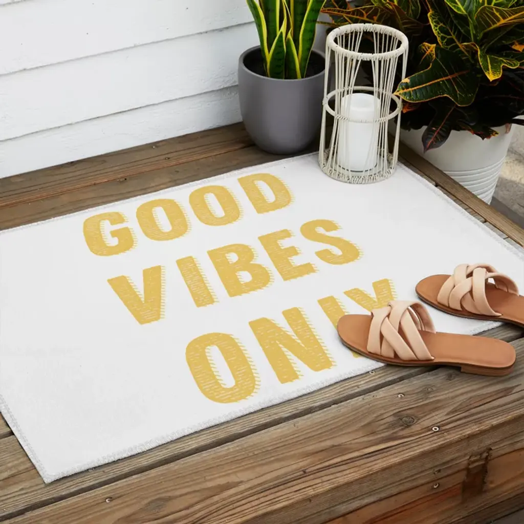 Good Vibes Only Bold Typography In Yellow Outdoor Rug