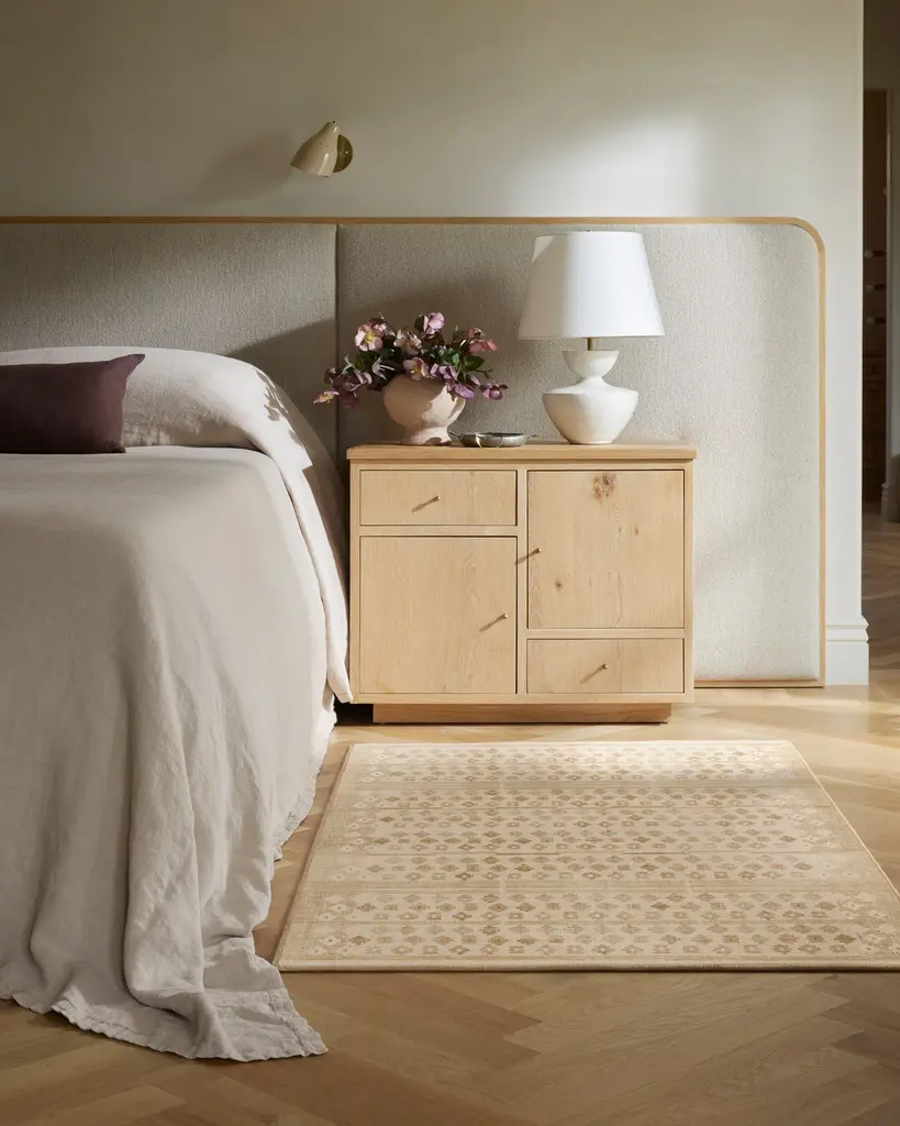 Naturally tranquil. Confidently livable. Our goop Lucia Natural Rug seamlessly blends organic elements with modern aesthetics. Inspired by Spanish Revival designs, this symmetrical style features an orderly repeated pattern field accented by simple yet textural borders. The color palette exudes livable luxury with a variety of soft, natural warm hues, punctuated by pops of light cream and clay. Water-resistant, stain-resistant, and machine-washable. Rug colors may vary slightly according to your device and the lighting in your space.