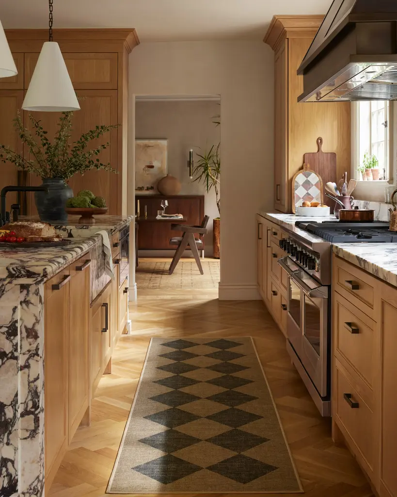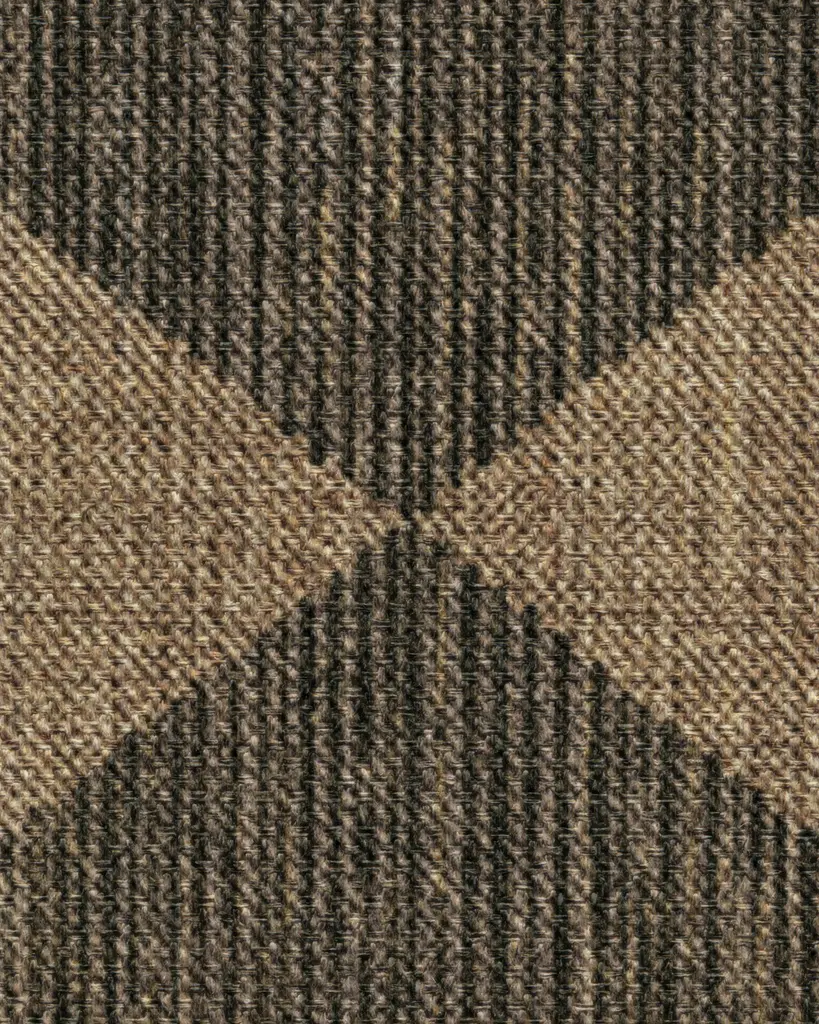 Redefine simplicity with our goop Salerno Soft Black Re-Jute Rug. Featuring an oversized, checkered diamond design, this harlequin style is modernized by a unique border that adds depth and dimension to the central motifs. Drawing color inspiration from natural earth tones, the charcoal elements blend seamlessly against a warm brown background. The woven jute-like material is made from recycled and virgin polyester, and polyurethane that won't shed or fray. Water-resistant, stain-resistant, and machine-washable.