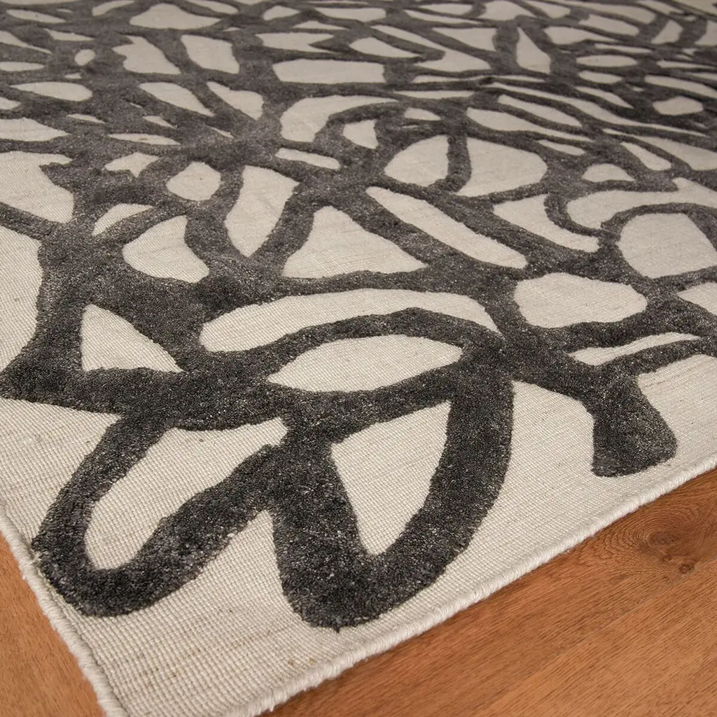 The Goudy rug reimagines contemporary design with its dramatic high low patterns and unique color palette. An allover bamboo silk pattern emerges from a wool flat weave foundation to create incredible visual depth and dimension. Bring intriguing texture and sophisticated pattern to any interior with this unique rug.