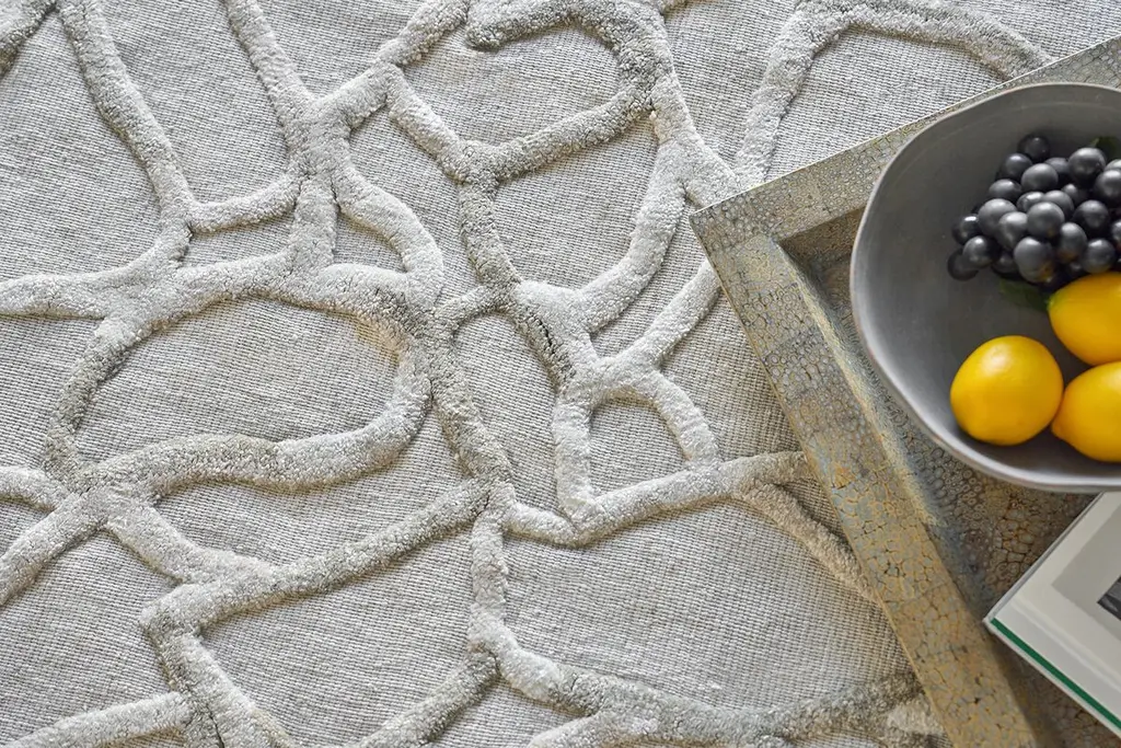 The Goudy rug reimagines contemporary design with its dramatic high low patterns and unique color palette. An allover bamboo silk pattern emerges from a wool flat weave foundation to create incredible visual depth and dimension. Bring intriguing texture and sophisticated pattern to any interior with this unique rug.