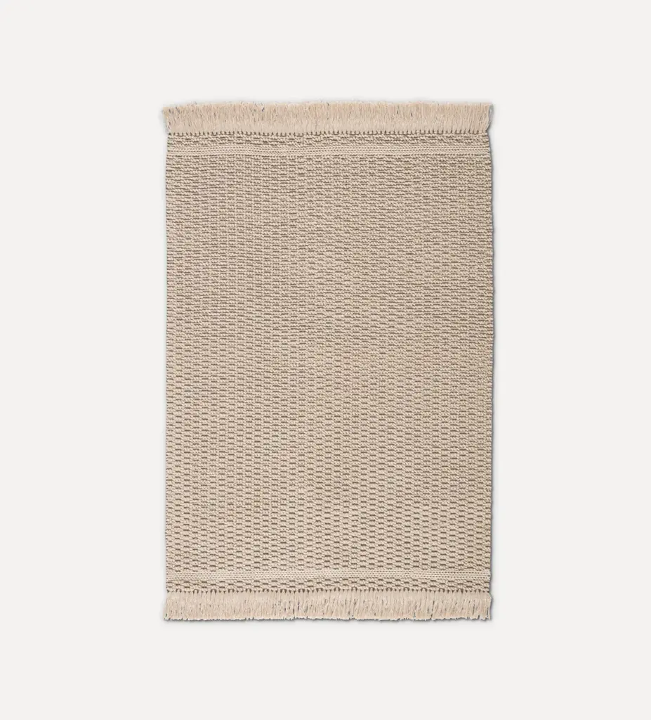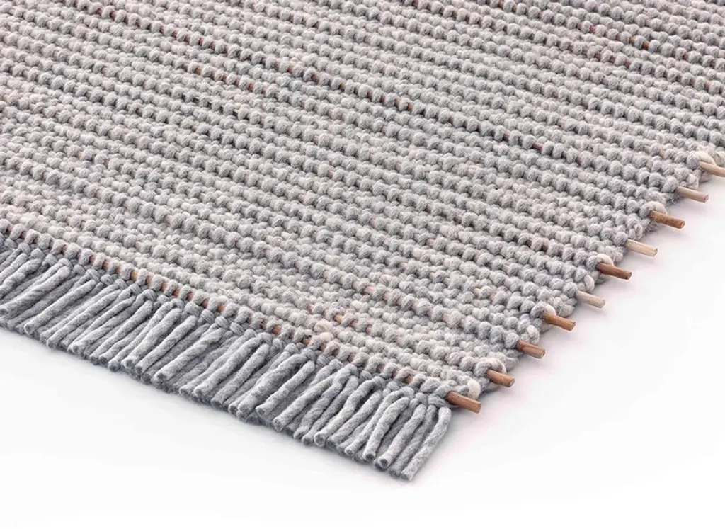 With GOZ, the master of architecture Kengo Kuma shows us his vision of craftsmanship by listening to materials, their intrinsic constructive capacities, and their emotional content. Composed of three rugs, Tsuchi, Kiri and Ame —terms for fog, rain, and soil in Japanese—, the collection extols the genuine beauty of handmade objects and focuses on the coexistence of materials in nature. On a manual loom, expert craftsmen insert teak wood rods —circular, semicircular, or square in section— into a framework of undyed virgin wool.COMPOSITIONWool and teak woodTECHNIQUEHand LoomWEIGHT / VOLUME3 Kg/m² / 0.62 lbs/ft²10 mm / 0.4"