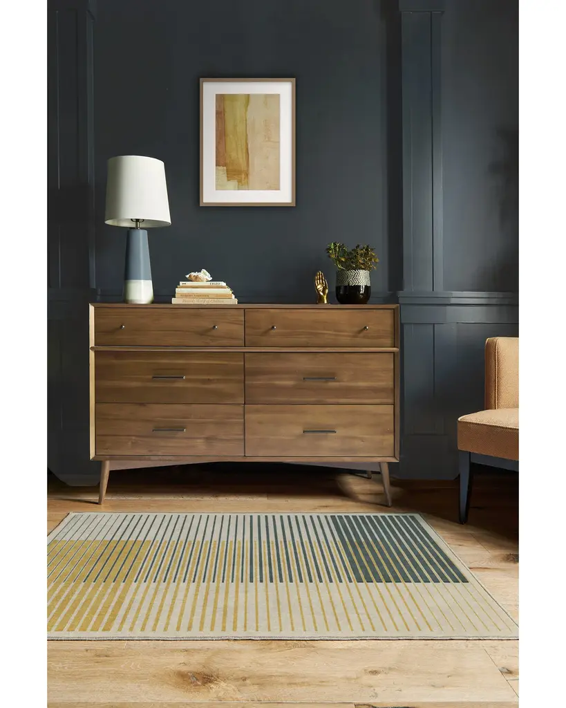 This Gradasi Teal Quartz Rug is a great way to infuse a unique pattern and color into your home. Featuring overlapping teal grey and coriander lines, drawn in various weights to mimic an ombre effect, this abstract art-inspired rug perfectly complements a modern minimalistic space.