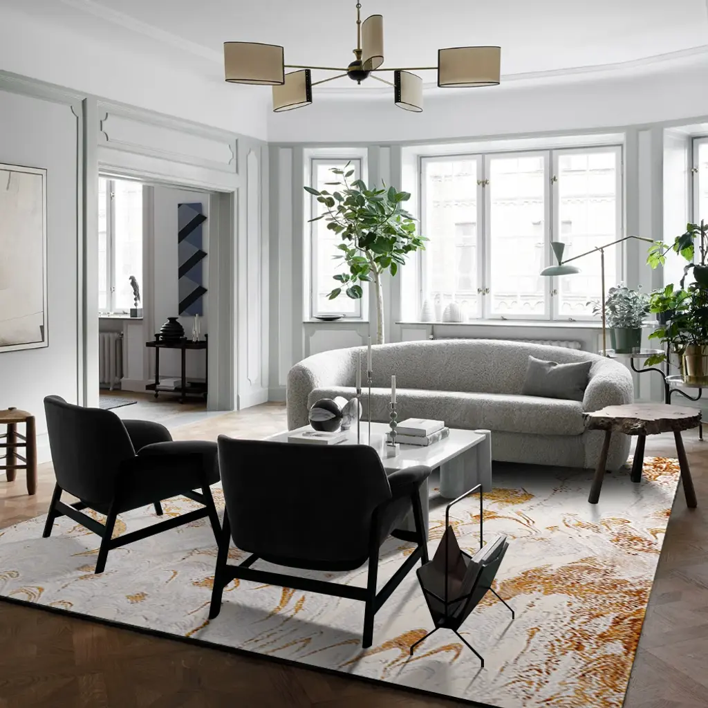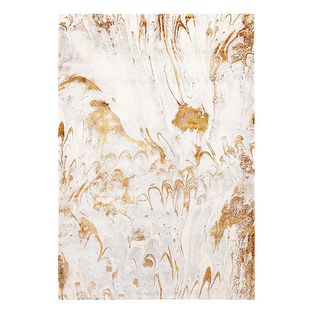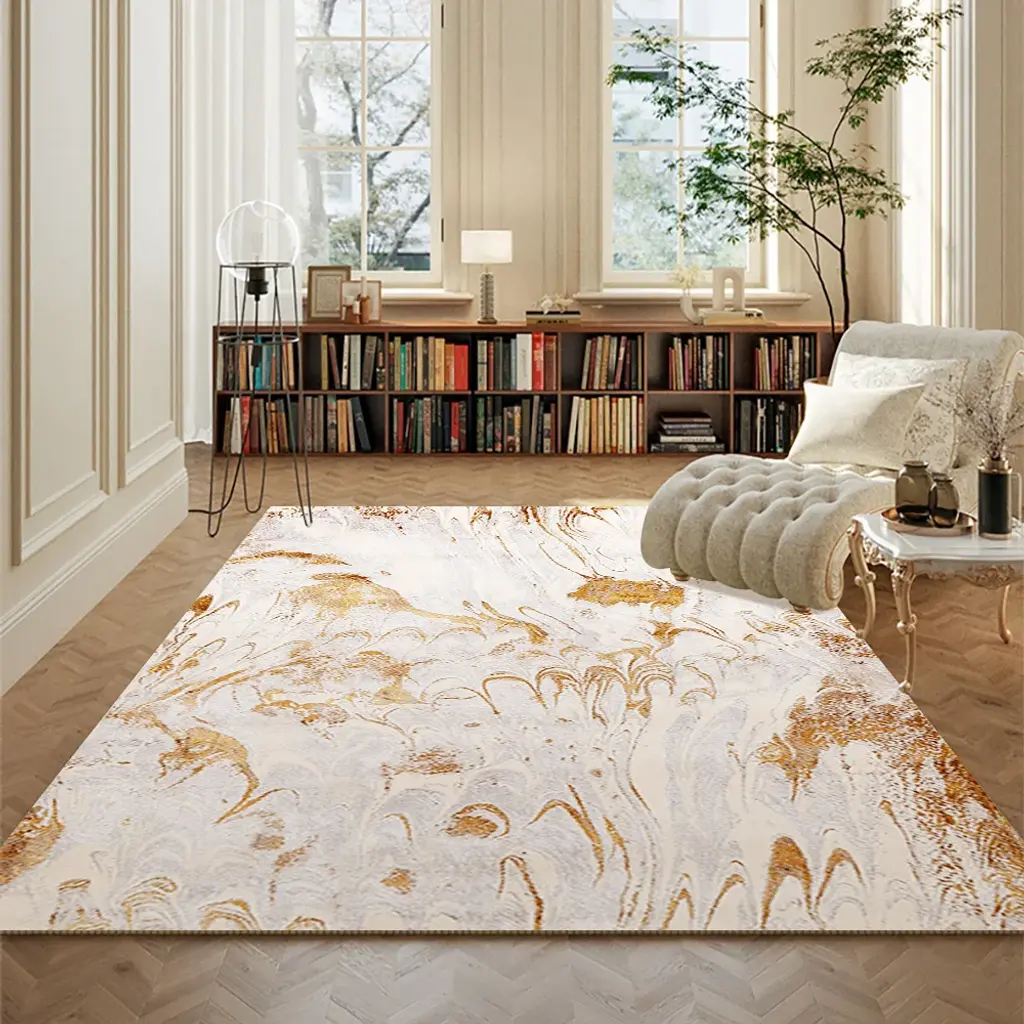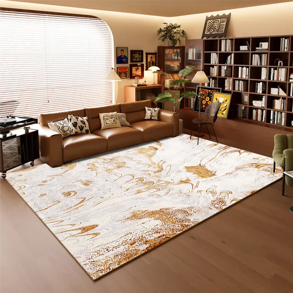 Gradient Gold Abstract Living Room Carpet Machine Washable Non-Slip Waterproof Area Rug