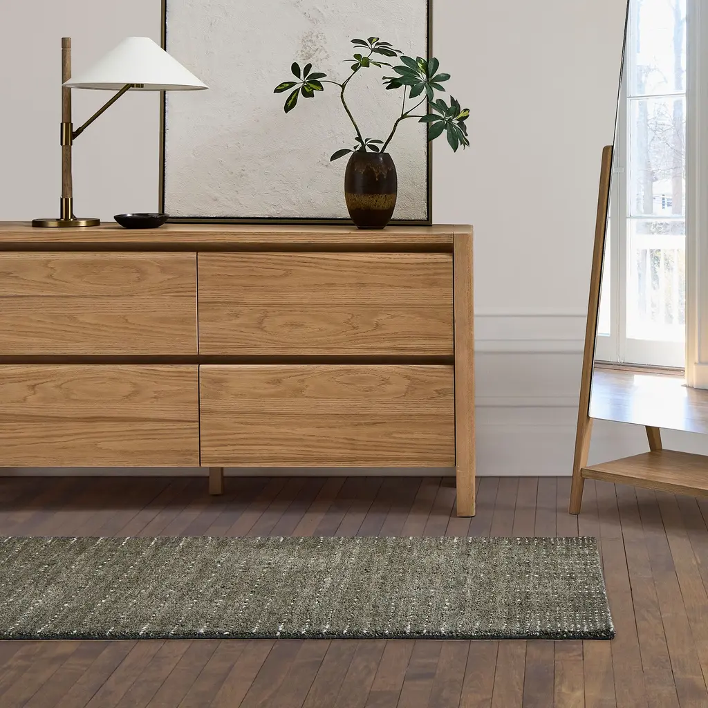Lush, 100% wool pile is equal parts soft and strong. Dots create a goes-with-anything pattern. Handwoven in a Fair Trade Certified™ facility.