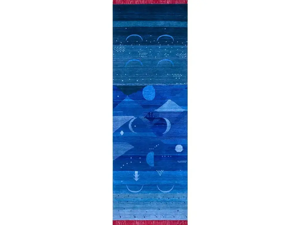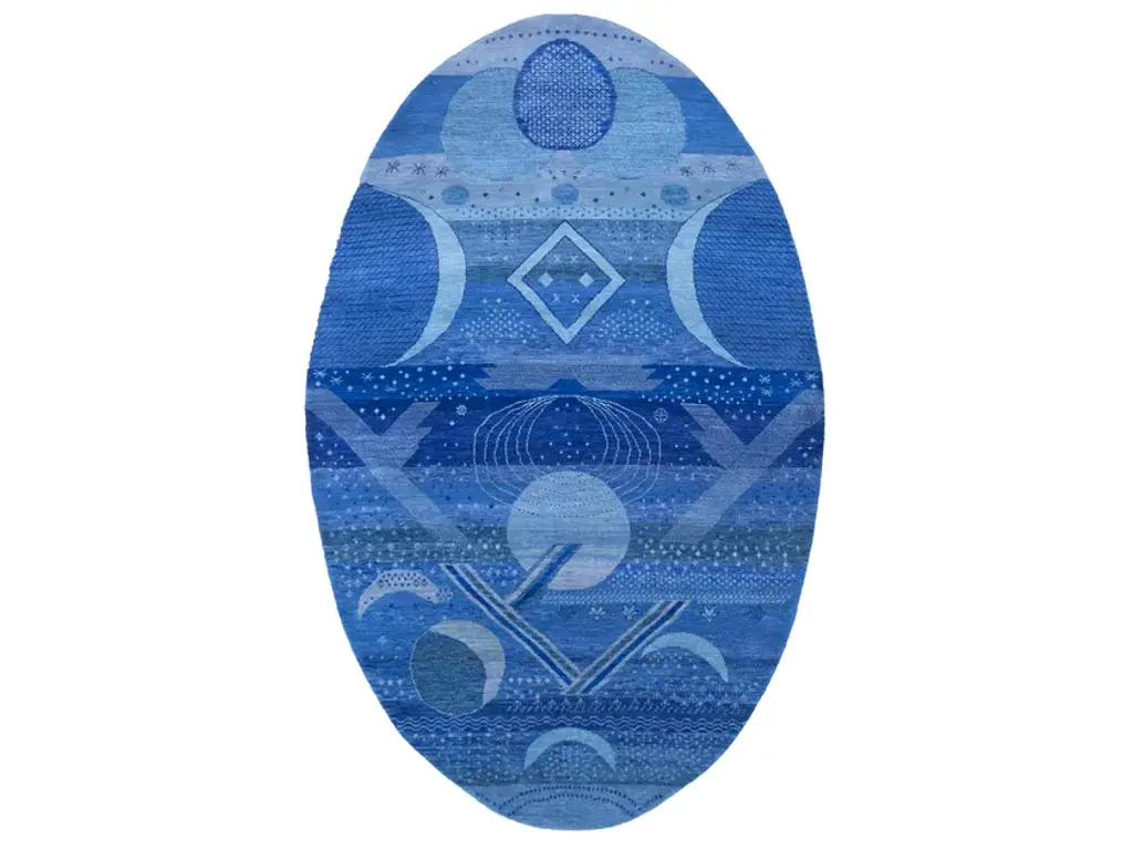 Graha LE-9207 is a hand-knotted wool rug.A sophisticated accent to any room, this gorgeous hand-knotted oval rug is made from premium wool and has a deep navy blue hue. Its 120x360 cm dimensions let it blend well with both classic and modern decor. Inspired by ancient celestial research, the rug has a complex astrological pattern. Stars, planets, and constellations are among the components that are painstakingly woven into this elaborate pattern to provide a breathtaking visual tale that perfectly conveys the splendor of the cosmos. The talent of the artisan is evident in each knot, creating a one-of-a-kind piece that is both a useful object and an artistic creation. Durability is guaranteed by the high-density knotting, which also permits intricate designs that are elegant and intriguing.Composition: 100% wool
